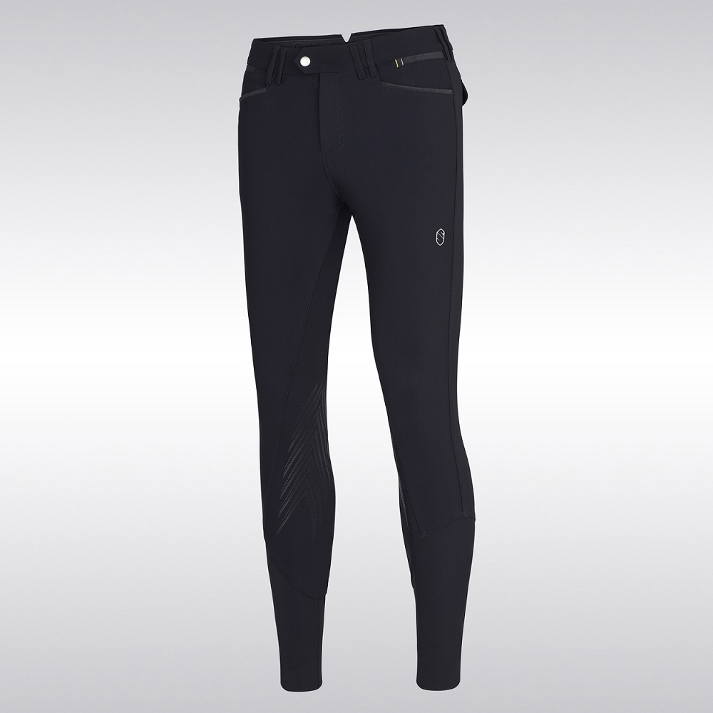 Комфортные мужские бриджи для верховой езды. Мягкий эластичный материал, полная свобода движений и оптимальная гибкость. Коленная силиконовая лея обеспечивает отличную стабильность в седле. Компрессионный крой обеспечивает идеальную посадку, увеличивает кровоток и поддерживает мышцы. Силиконовая вставка на поясе удерживает ваше поло для верховой езды заправленным. Четыре удобных кармашка, стильные детали из алькантры и фирменный логотип.Перед посещением, уточняйте наличие товара в магазине