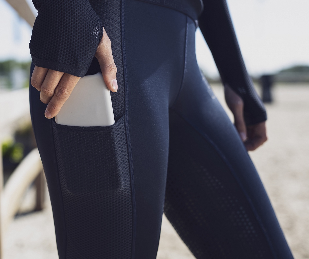 Легкие леггинсы для верховой езды с высокой талией и полной силиконовой леей. Изготовлены из технологичного, дышащего материала с эластичными вставками DynAirMesh по бокам. Небольшой карман на поясе и дополнительный карман для телефона на правом бедре.Нет в наличии, ожидается поступление.