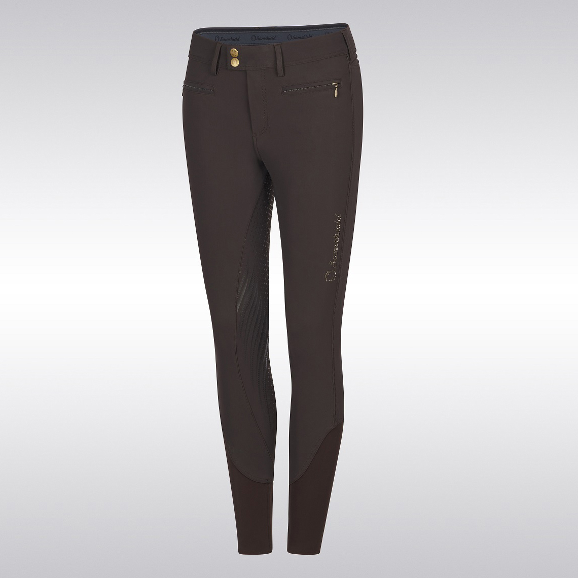 Бестселлер Samshield! Эластичные бриджи для верховой езды, мягкие и удобные, как вторая кожа! Полная свобода движений и оптимальная гибкость. Технологичная ткань регулирует температуру тела и отводит влагу, сохраняя кожу сухой. Полная лея с шестислойным силиконовым напылением обеспечивает отличную стабильность в седле. Компрессионный трикотаж в области икр увеличивает кровоток и поддерживает мышцы. Силиконовая вставка на поясе удерживает ваше поло для верховой езды заправленным. Удобный скрытый кармашек для телефона, фирменная вышивка и инкрустация кристаллами Swarovski®.Перед посещением, уточняйте наличие товара в магазине