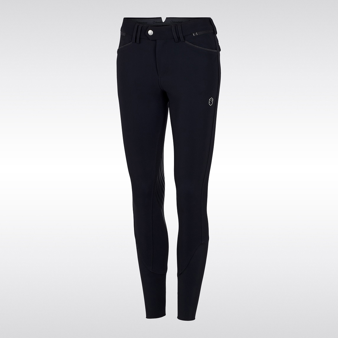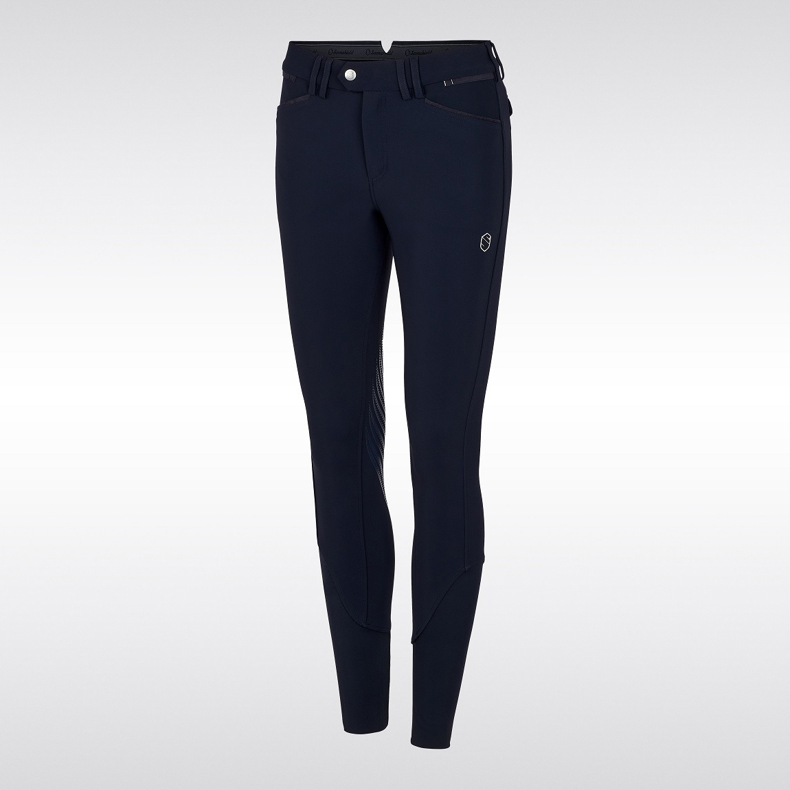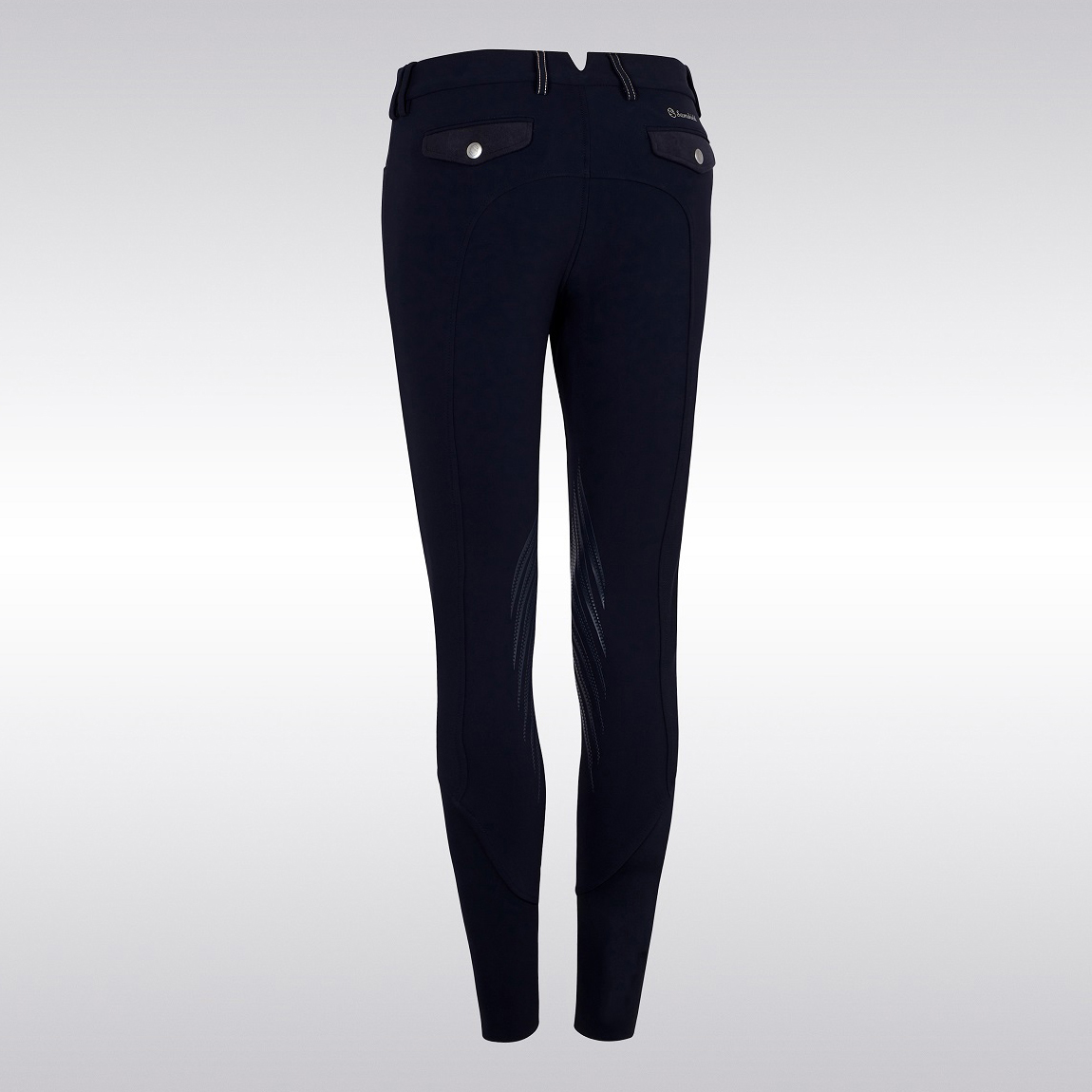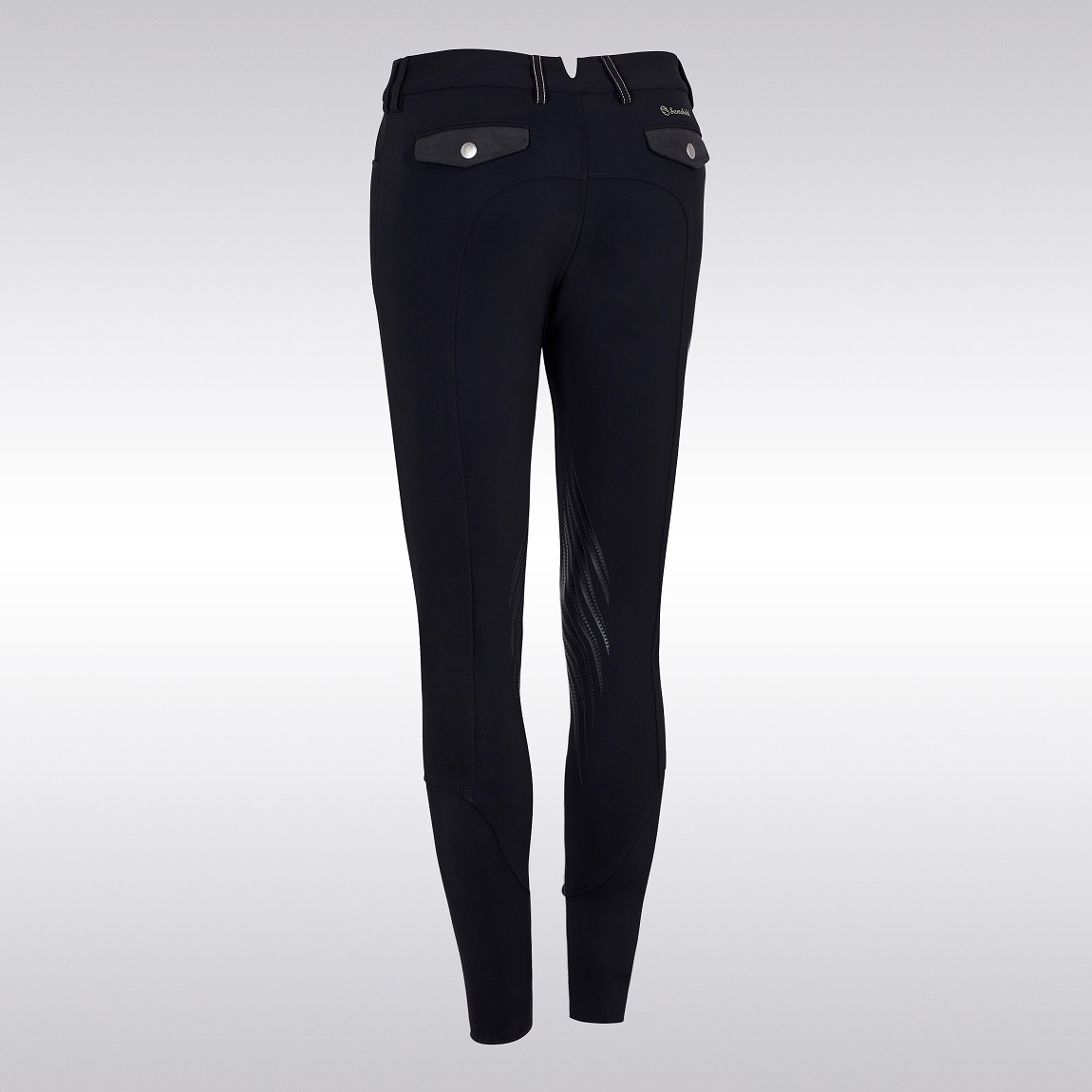 Стильные бриджи для верховой езды. Надежная коленная лея обеспечивает отличную стабильность в седле. Компрессионный крой создает красивый силуэт и обеспечивает идеальную посадку, увеличивает кровоток и поддерживает мышцы. Силиконовая вставка на поясе удерживает ваше поло для верховой езды заправленным. Четыре удобных кармашка, стильные детали из алькантры и инкрустация кристаллами Swarovski®.Перед посещением, уточняйте наличие товара в магазине