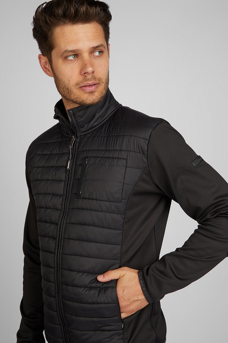 Комбинированная мужская куртка с утеплителем. Синтетический наполнитель сохраняет тепло, а мягкие рукава позволяют двигаться без ограничений. Классический приталенный крой, два боковых кармана и удобный кармашек на груди. Однотонный дизайн с фирменным лого.Нет в наличии, ожидается поступление.