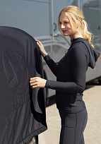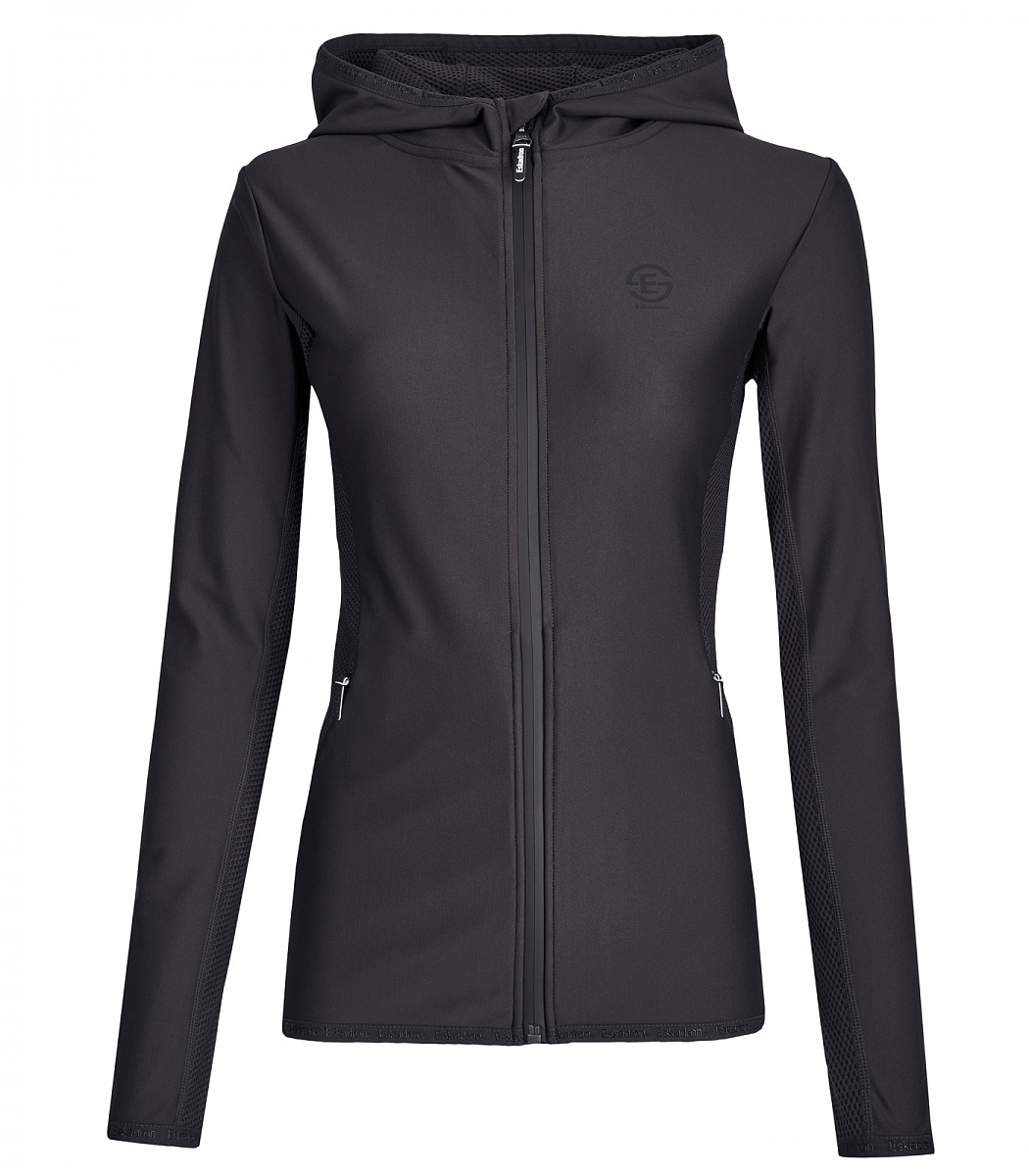 Спортивная куртка на молнии для верховой езды. Приталенный крой, уютный капюшон. Технический трикотаж с эластичными сетчатыми вставками для целевой вентиляции. Два удобных кармана для телефона или вкусняшек, функциональный задний кармашек на молнии. Фирменное лого в тон.Нет в наличии, ожидается поступление.