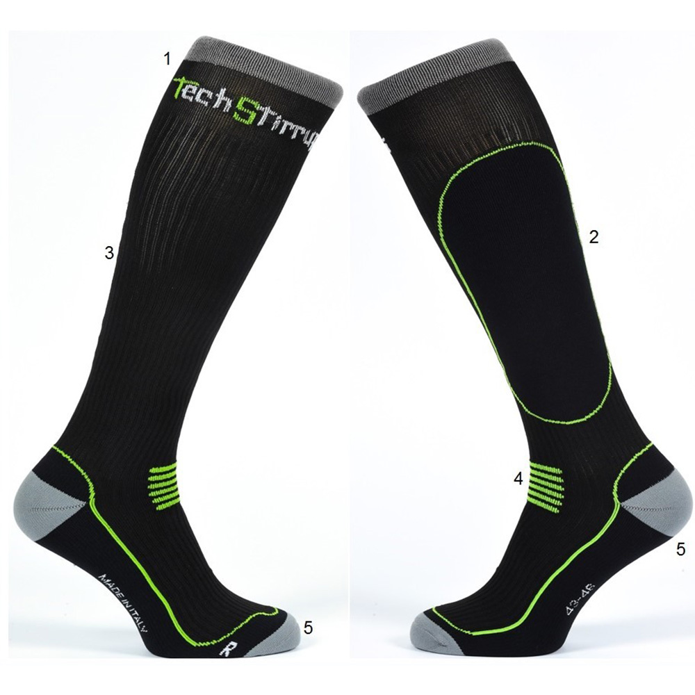 Гольфы для верховой езды, созданные специально для снятия напряжения с мышц всадника. Оснащены массажными вставками (3); эластичной резинкой (1), хорошо удерживающей гольфы во время ношения, и в то же время предоставляющей всаднику полную свободу движения; специальными вставками на икре (2) и в области подъема (4), помогающие избежать травм из-за трения; усилены в области пятки и пальцев(5). Гольфы сделаны из дышащего, специального материала (полипропилен, полиамид и эластан), который быстро сохнет, выводит влагу наружу, обеспечивая сухость и комфорт даже во время длительного ношения. Гольфы специально обозначены для правой и левой ноги.Нет в наличии, ожидается поступление.