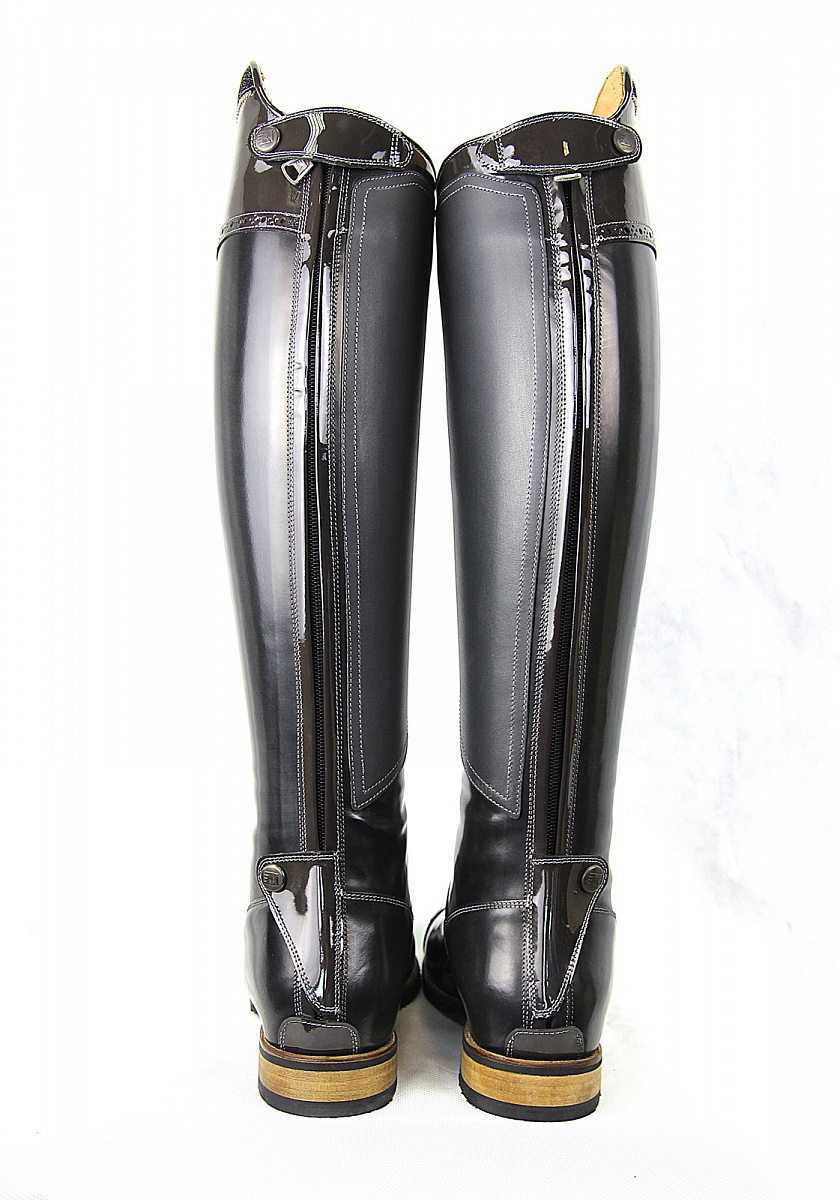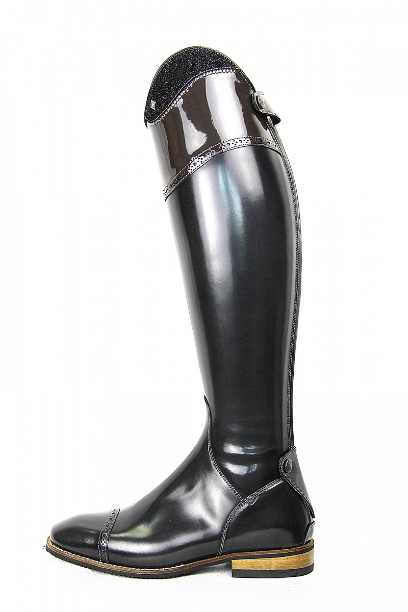 Сапоги Messapia сделаны из мягкой, гладкой, высококачественной телячьей кожи. Оснащены удлинённым голенищем в наружной части колена и усиленной прослойкой на внутренней стороне голенища. Молния проходит вдоль задней части сапога и имеет две защитные застежки из лаковой кожи, одну в верхней части, а вторую в области пятки. Полностью кожаная подошва с внутренними вставками из карбона поглощает удары и обеспечивает удобную посадку. Сапоги украшены линией из страз, сверкающими камнями, лаковым топом и ступней, а так же матовым голенищем, фигурной перфорацией и фирменным лейблом De Niro.Нет в наличии, ожидается поступление.