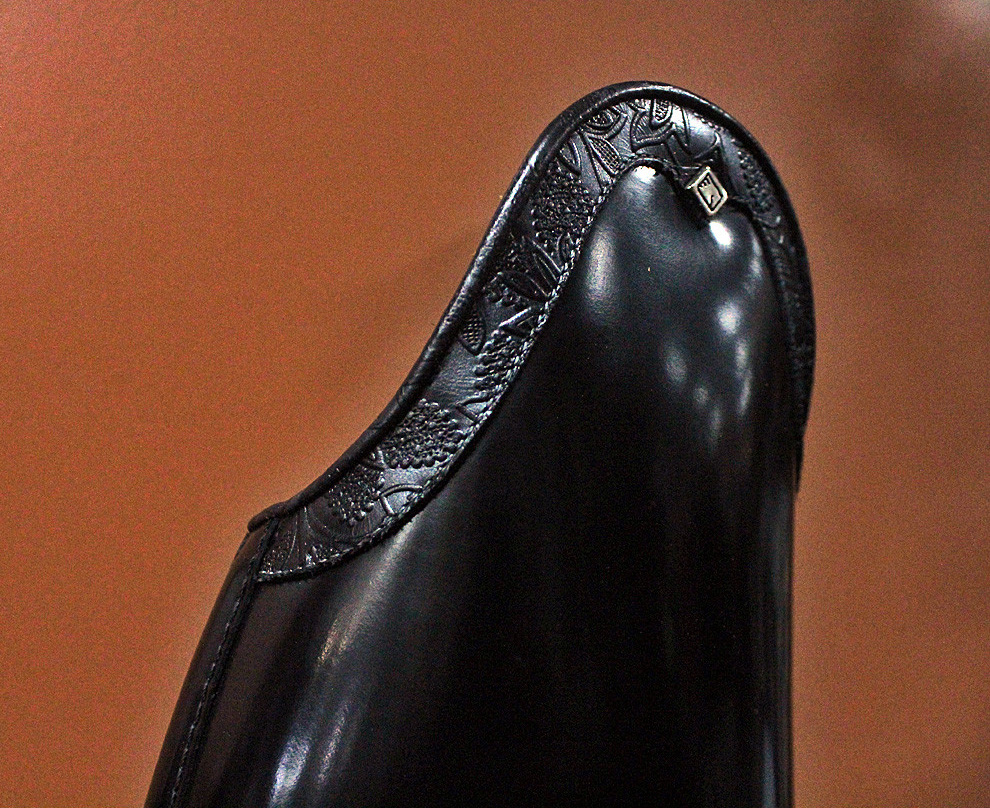 Выездковые сапоги Raffaello Top Rondine сделаны из комбинации матовой и полированной телячьей кожи, оснащены удлинённым и усиленным наружным голенищем. Молния проходит вдоль передней части сапога и имеет защитную застежку в верхней части. Полностью кожаная подошва с внутренними вставками из карбона поглощает удары и обеспечивает удобную посадку. Сапоги украшены цветочным узором на голенище и фирменным лейблом De Niro.Нет в наличии, ожидается поступление.