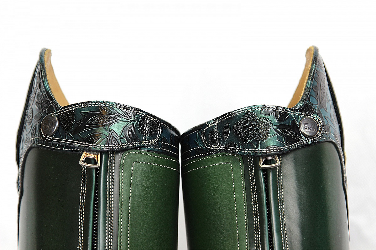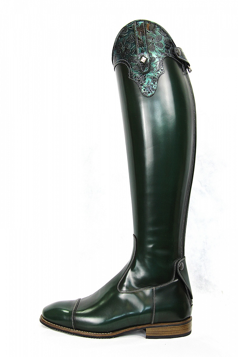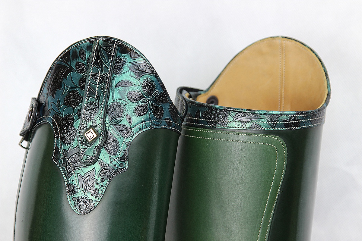 Сапоги S36A сделаны из мягкой, гладкой, высококачественной телячьей кожи. Оснащены удлинённым голенищем в наружной части колена и усиленной прослойкой на внутренней стороне голенища. Молния проходит вдоль задней части сапога и имеет две защитные застежки из кожи, одну в верхней части, вторую в области пятки. Полностью кожаная подошва с внутренними вставками из карбона поглощает удары и обеспечивает удобную посадку. Сапоги украшены топом с цветочным рисунком и металлическим блеском, а так же фирменным лейблом De Niro.Нет в наличии, ожидается поступление.
