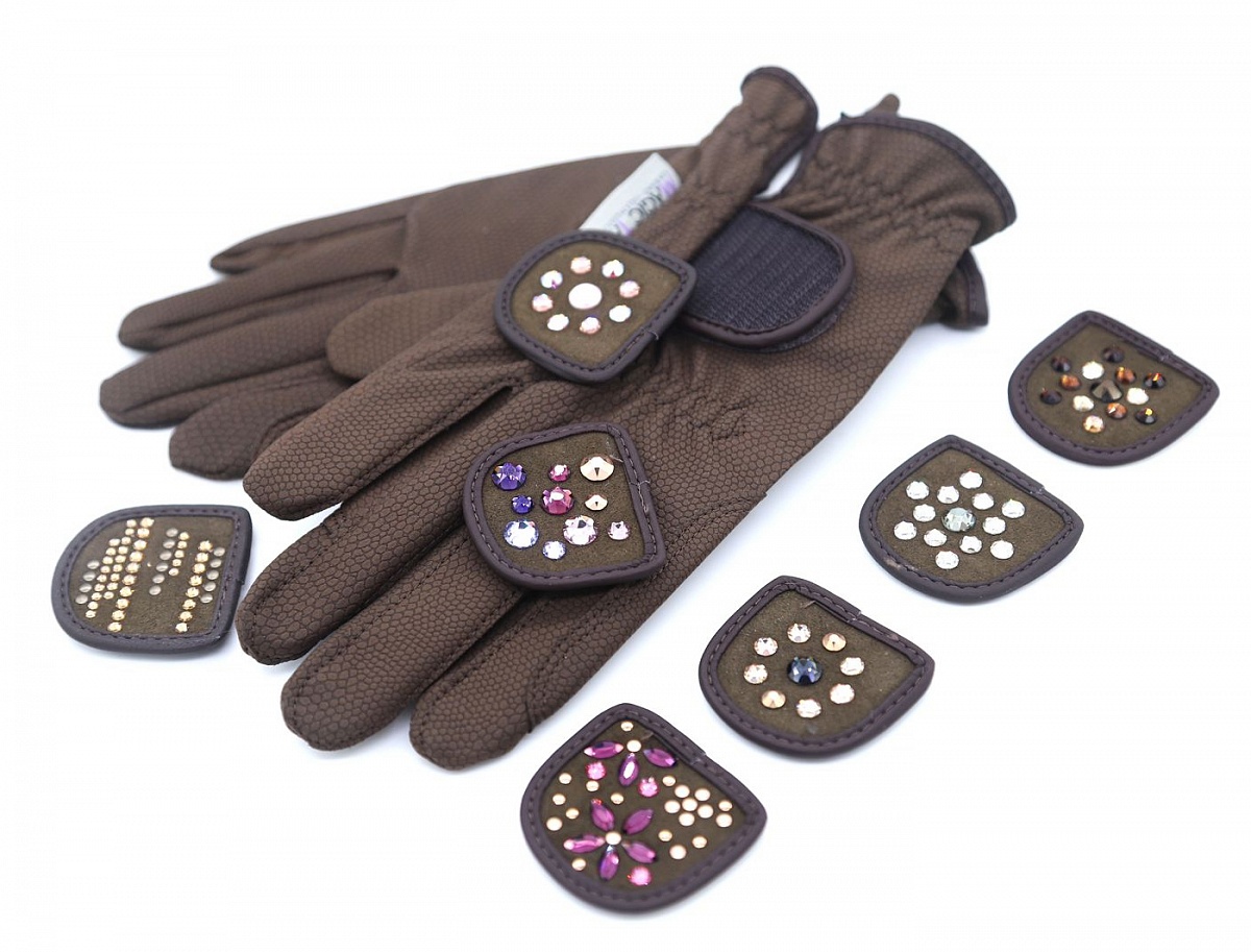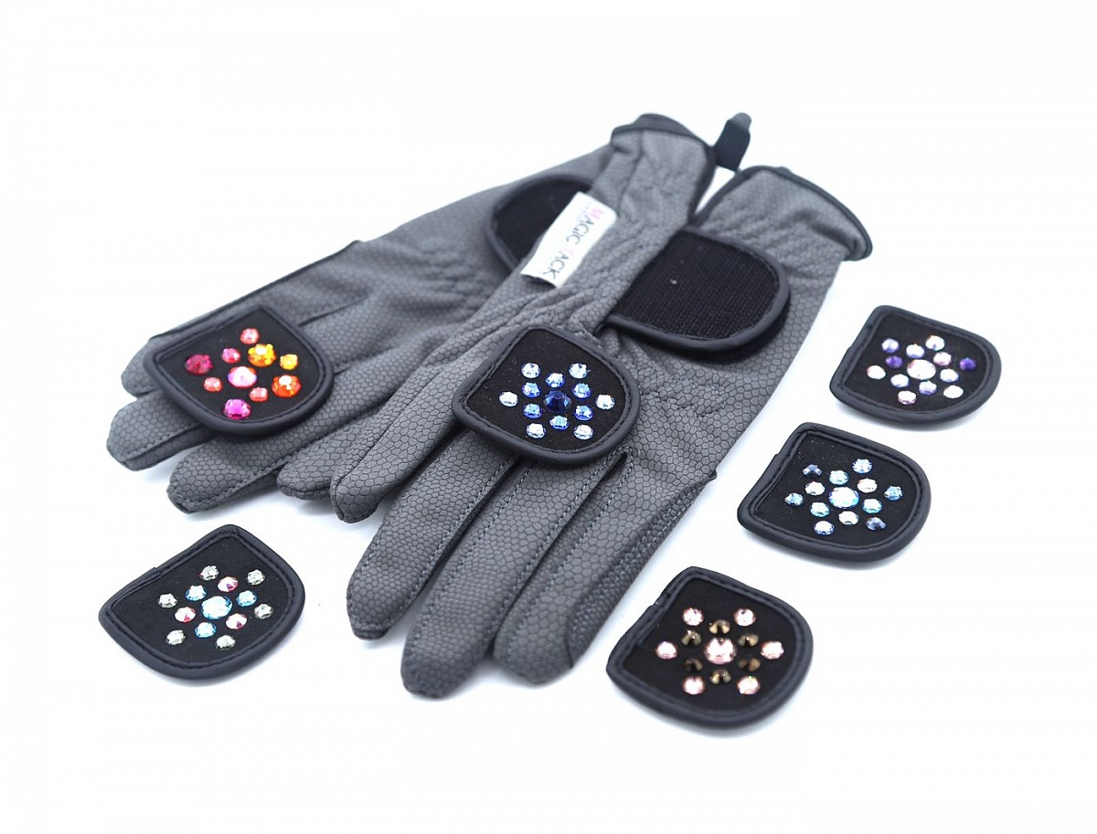 Перчатки для верховой езды "Touch of MagicTack" от Hauke Schmidt. Прочный материал верха, классическая застежка на липучке с фирменным логотипом и надежное сцепление с поводом. Удобная система Magic Tack позволяет легко и быстро устанавливать сменные вставки с кристаллами. Дополнительные вставки продаются отдельно (арт. 0111-399). Для неповторимых образов на тренировках или соревнованиях!| Наименование | Розничный магазин | Интернет-магазин | Кол-во | |