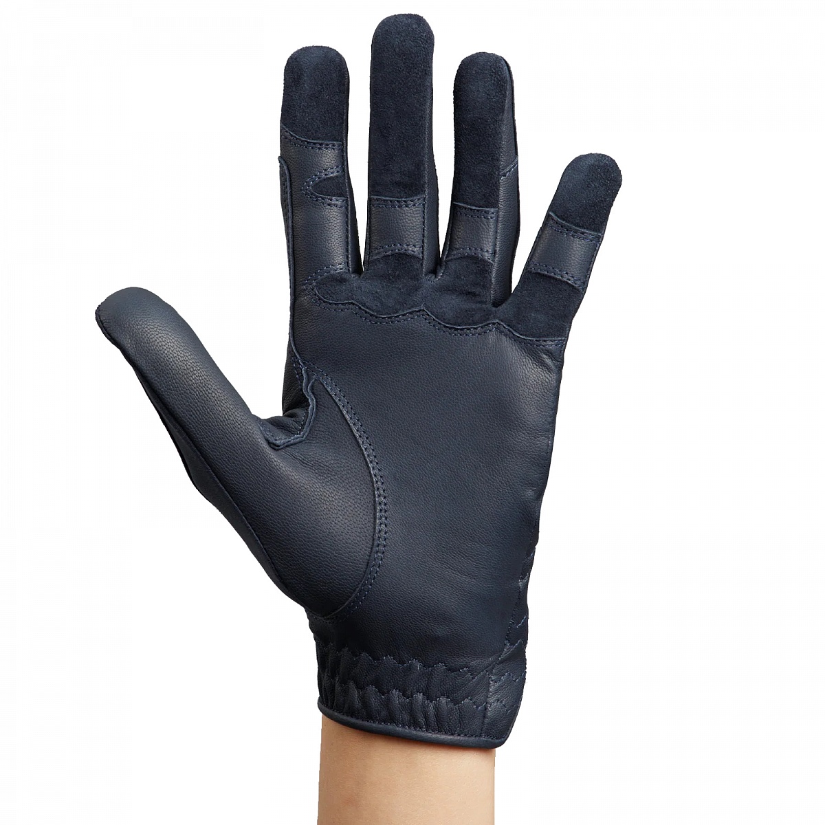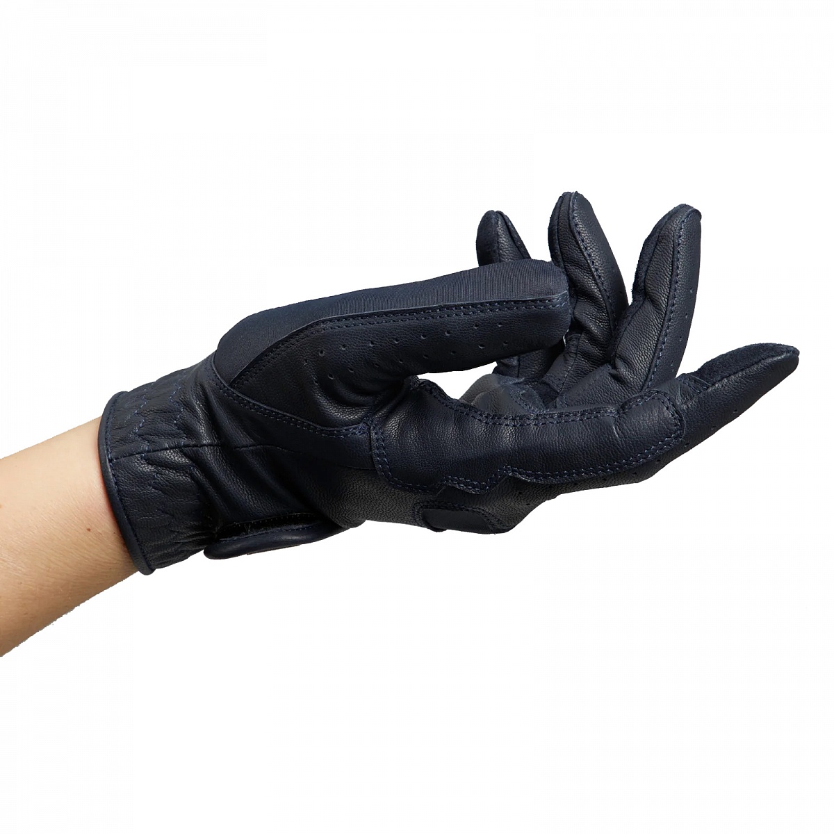 Стильные перчатки для верховой езды из натуральной кожи. Удобные и элегантные. Превосходное сцепление с поводом, прекрасно дышат и легко тянутся. Эластичное запястье, сетчатые вставки на тыльной стороне ладони, усиление в местах контакта с поводом и перфорация на пальчиках. Классический дизайн, застежка-липучка с фирменным логотипом.Нет в наличии, ожидается поступление.