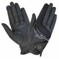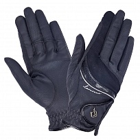 Стильные комбинированные перчатки для верховой езды. Мягкие, удобные и эластичные. Дышащий материал верха прекрасно пропускает воздух и делает перчатки комфортными для езды в любых погодных условиях. Обновленные усиленные вставки в местах контакта с поводьями идеально подходят для работы в два повода. Застежка-липучка, стильные контрастные детали и фирменное лого.Перед посещением, уточняйте наличие товара в магазине