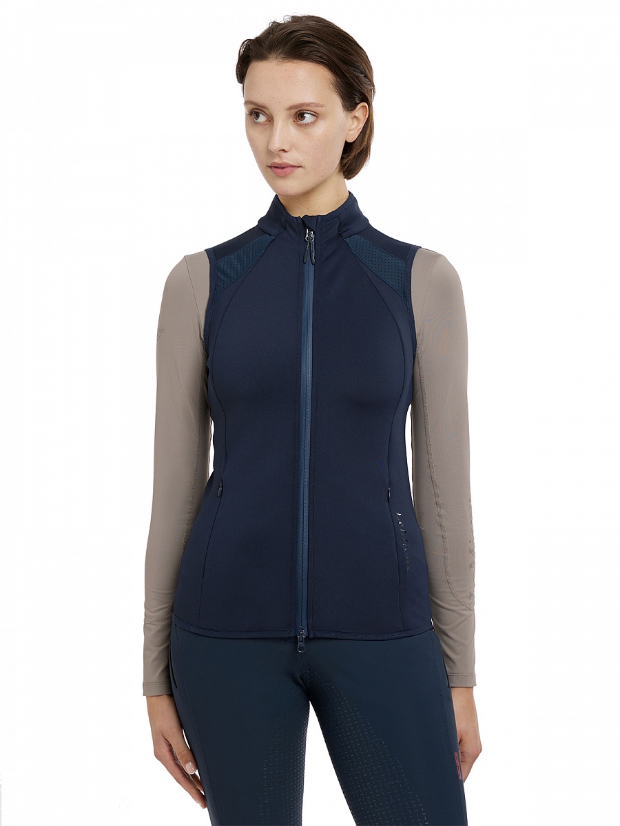 Облегченный жилет для верховой езды. Приталенный силуэт, сетчатые вставки по бокам, два кармашка на молнии, воротник стойка и фирменный силиконовый принт.| Наименование | Розничный магазин | Интернет-магазин | Кол-во | |