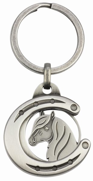 Красивый брелок в виде подковы со вставленным изображением головы лошади. Брелок оснащён колечком для ключей.Нет в наличии, ожидается поступление.