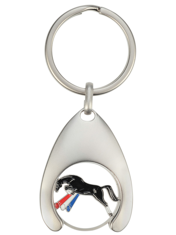 Металлический брелок-держатель для монет в комплекте с двусторонним изображением лошади в прыжке. С таким брелочком монеты не будут теряться в сумке или кармане.Нет в наличии, ожидается поступление.