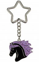 Красивый детский брелок в виде головы черной лошади со сверкающей фиолетовой гривой. Кольцо в виде звездочки прекрасно подойдет для крепления на куртку, рюкзак или ключи.Нет в наличии, ожидается поступление.
