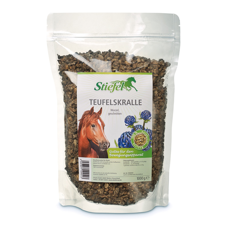 Натуральная растительная подкормка «чёртов коготь» оказывает положительный эффект на опорно-двигательный аппарат, в том числе, на связки, суставы и хрящи. Оказывает противовоспалительный эффект, снимает отеки, облегчает подвижность суставов. Главное действующее вещество — гликозид гарпагозид, подавляющий действие энзима, вызывающего деградацию суставного хряща.Нет в наличии, ожидается поступление.