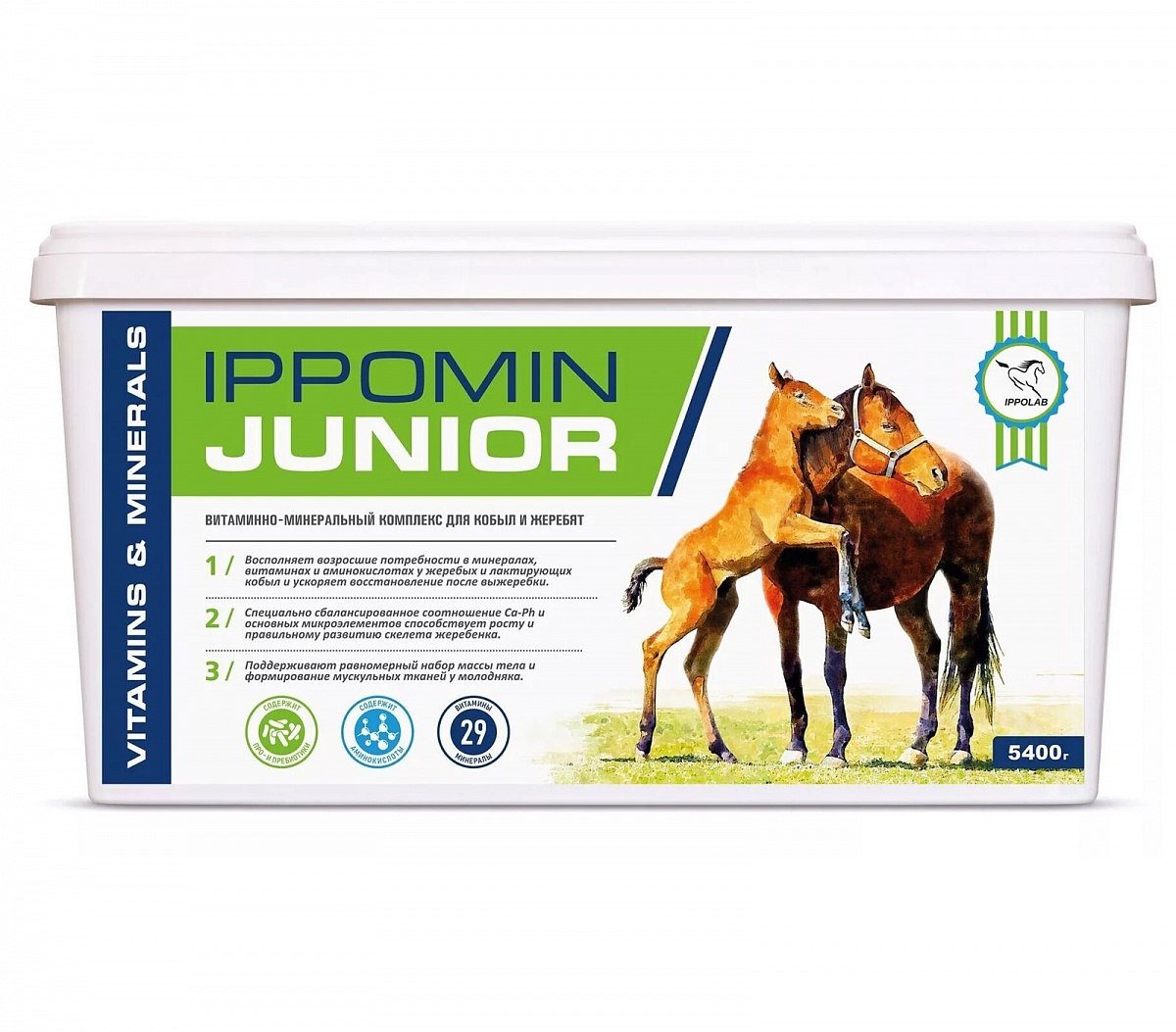 Витаминно-минеральный комплекс для жеребят, молодых лошадей, жеребых и кормящих кобыл. Восполняет возросшие потребности в минералах, витаминах и аминокислотах в организме жеребых и лактирующих кобыл и ускоряет их восстановление после выжеребки.Перед посещением, уточняйте наличие товара в магазине