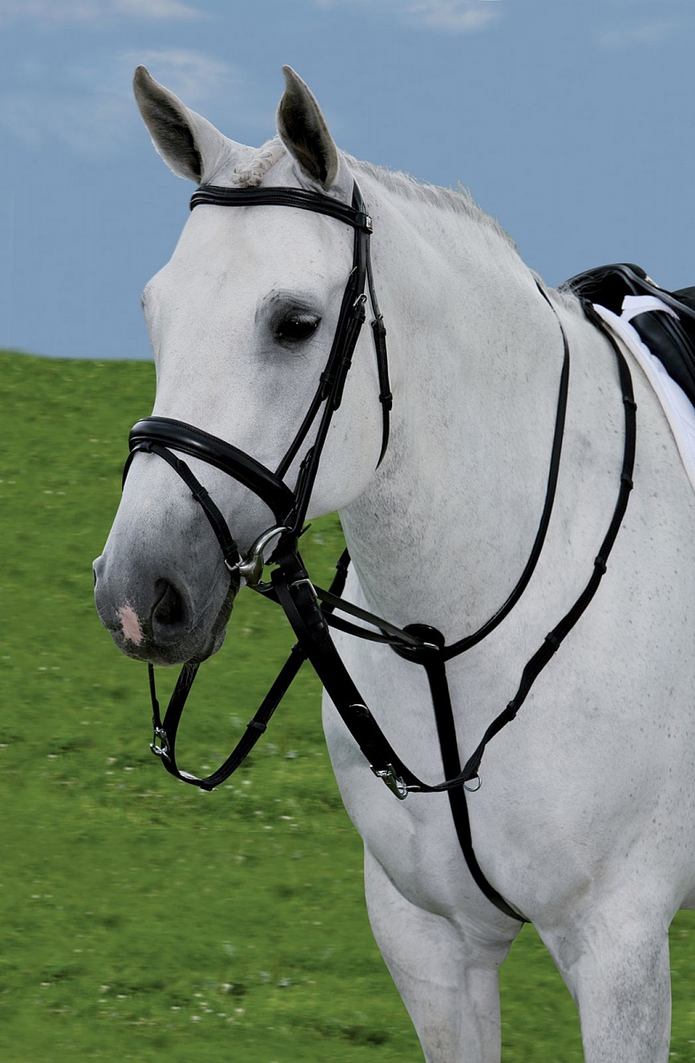 Мартингал с балансирующими поводьями. Используется для фиксации положения головы лошади, исправления ошибок у лошадей или для облегчения езды начинающего всадника. Одевается как обычный мартингал, затем скользящие поводья продеваются через трензельные кольца и цепляются карабинами за специальные кольца на поводе.Нет в наличии, ожидается поступление.