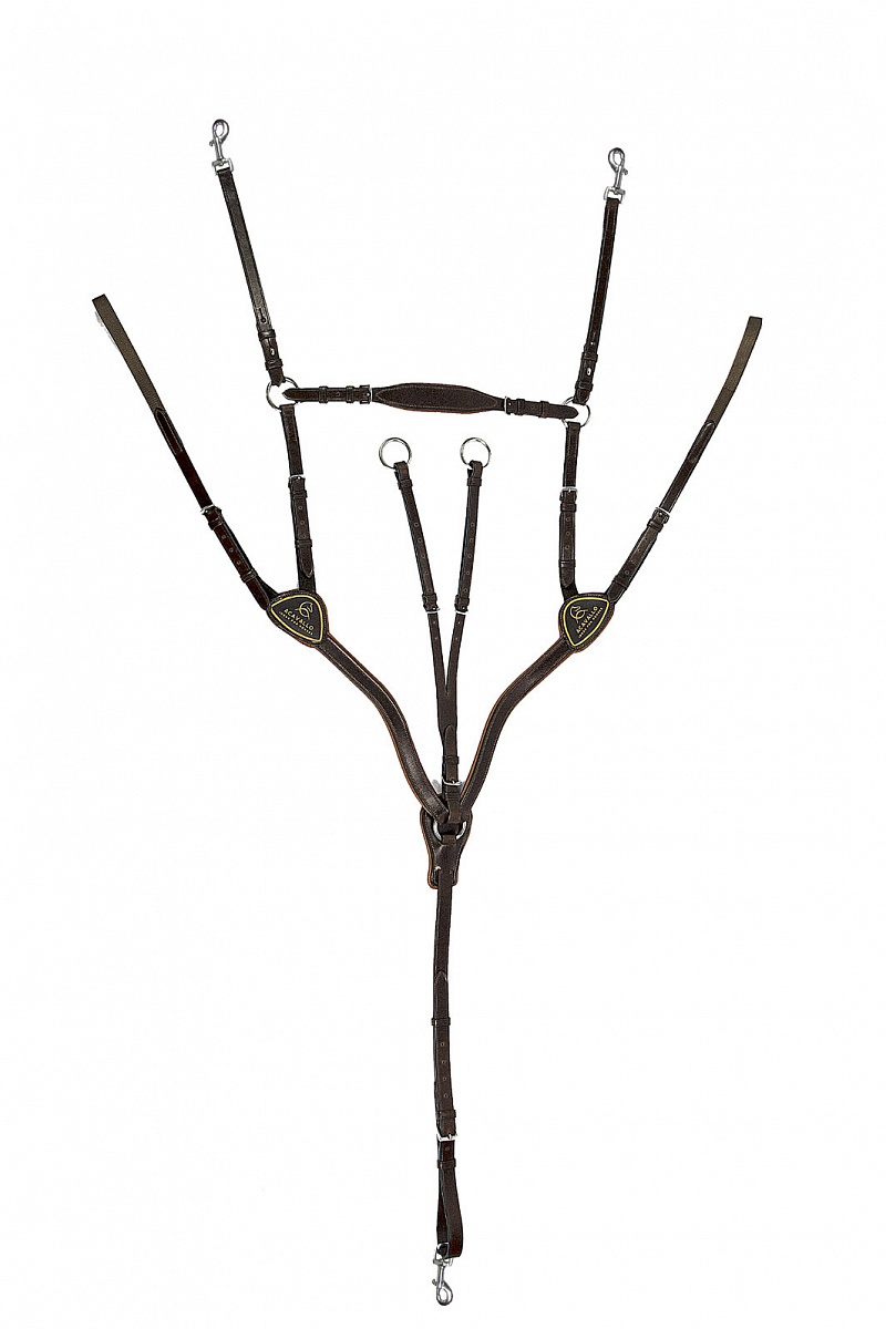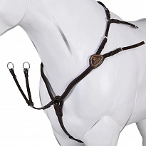 Анатомическое подперсье с мартингалом Acavallo. Не сковывает движений и удерживает седло в нужной позиции. Съемный мартингал ограничивает движение головы, не дает лошади бить в повод и резко вскидывать голову. Удобная регулировка размера, стильные вставки с фирменным лого.Перед посещением, уточняйте наличие товара в магазине