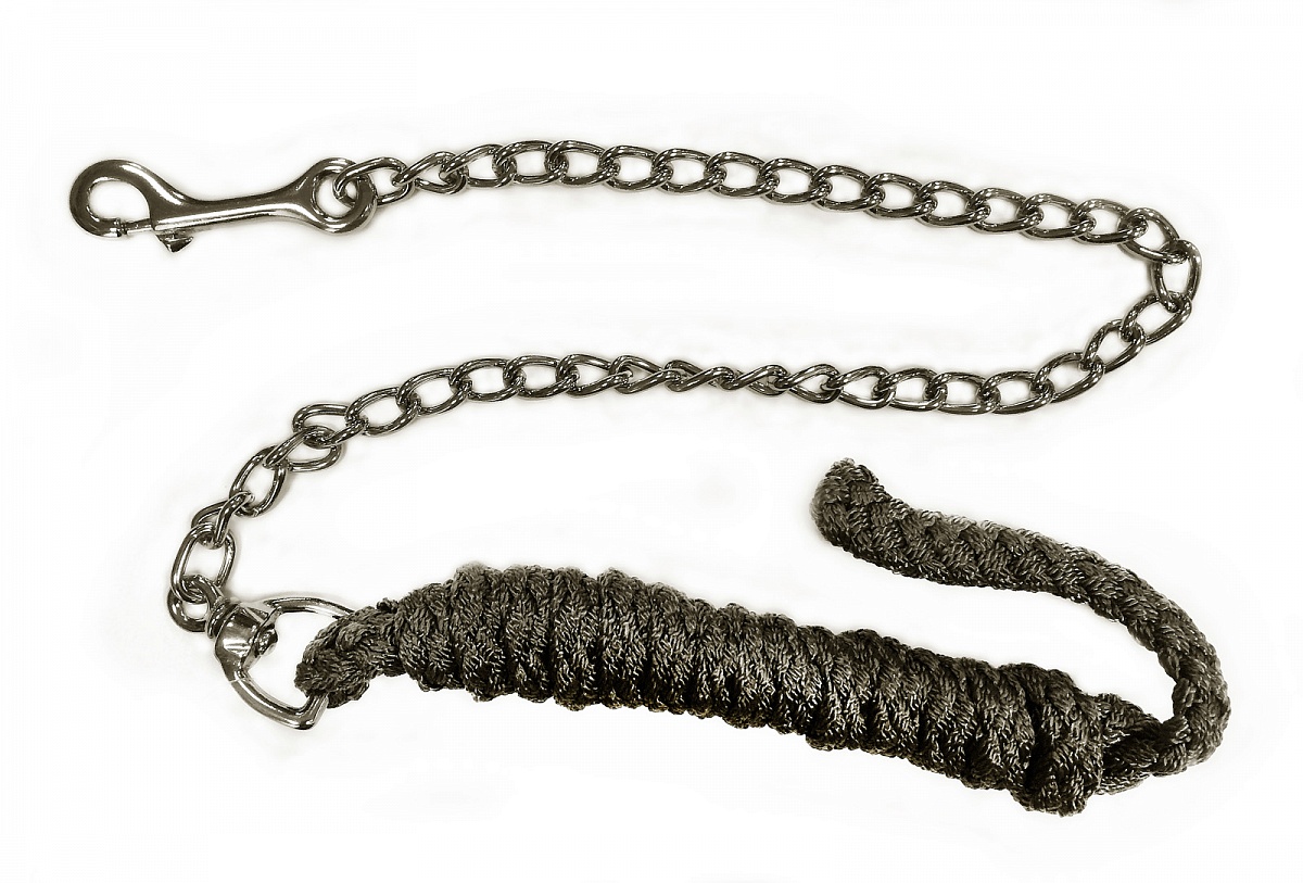 Чумбур из прочного полипропилена с цепочкой и карабином петелькой из никелированной стали. Цепочку можно использовать и крепить разными способами для того, чтобы контролировать сильных и строгих лошадей в руках.Нет в наличии, ожидается поступление.