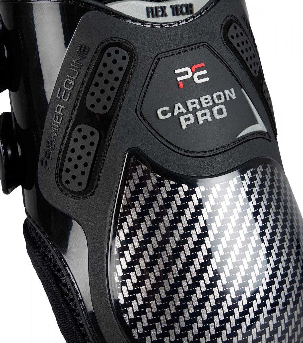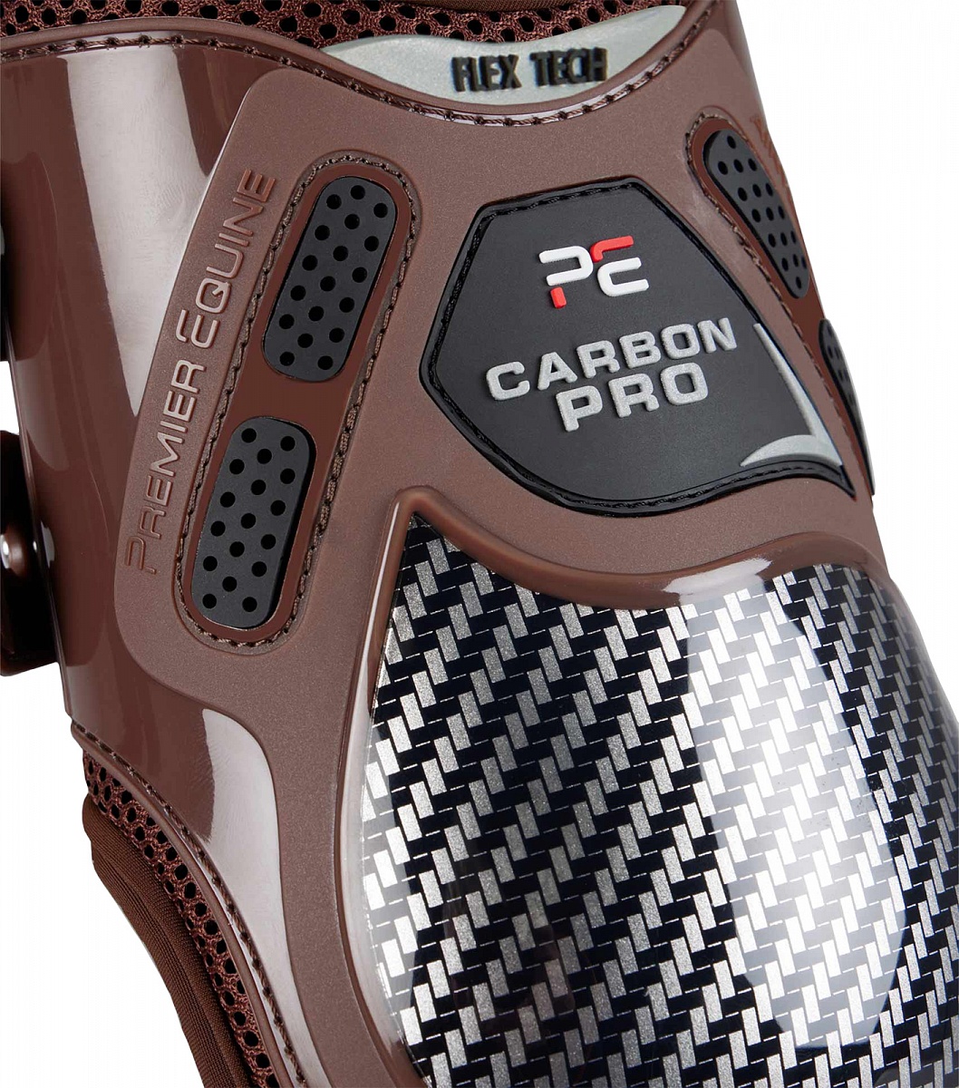 Задние ногавки «Carbon Pro» от Premier Equine. Анатомическая форма с гибкими зонами гарантирует максимальный комфорт и идеальное расположение на ногах лошади. Прочная оболочка из ТПУ, вспененный амортизатор ACF®, способный поглощать и рассеивать до 97,1% сил удара, для максимальной защиты бабки и зон повышенной травматичности. Карбоновое усиление для безупречной защиты от ударов во время тренировок и прыжков без дополнительного утяжеления. Эластичные ремешки, удобные застежки на быстроразъемных гвоздиках. Простые в уходе, легко моются водой.Перед посещением, уточняйте наличие товара в магазине