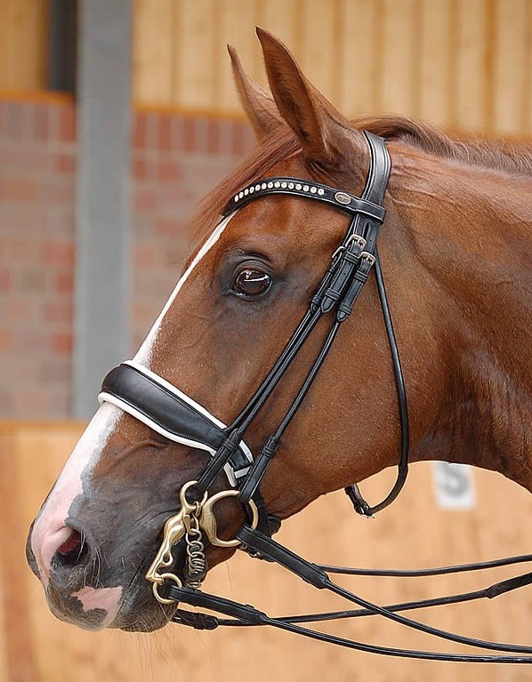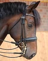 Шикарное дутое оголовье с широким самозатягивающимся капсулем (50мм). Мягкая неопреновая подкладка и тонкая прослойка из нежной овечьей кожи для максимального комфорта, эргономичный вырез под трензельные кольца. Изогнутый анатомический затылочный ремень дает больше пространства для основания ушей и снимает давление с затылка лошади. Красивый фигурный налобный с якими кристаллами Swarovski. Матовая фурнитура из высококачественной нержавеющей стали, прочные английские крючки на нащечных ремнях. Поводья в комплект не входят.Нет в наличии, ожидается поступление.