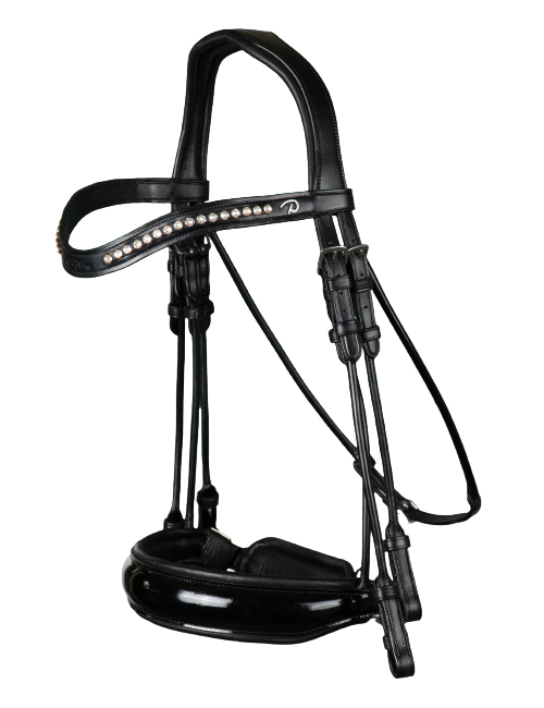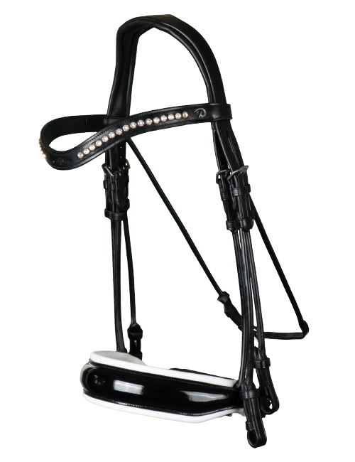 | Оголовье "D Collection", дутое, лаковый самозатягивающ. капсуль 50 мм, р.X-FULL, повод в комплект не входит, цв. черный/белые камни/фурнит. хром. |