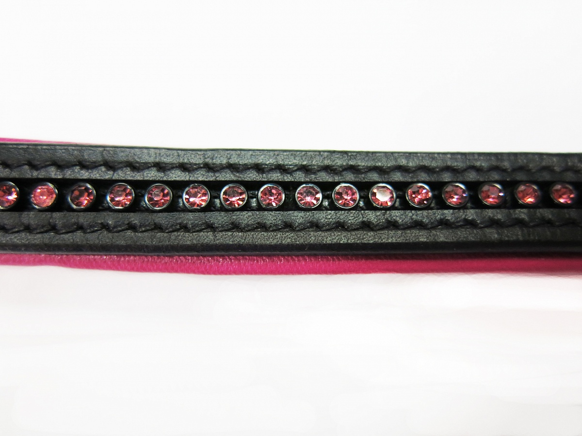 Яркий налобный ремень с розовой подложкой и розовыми сверкающими стразами. Длина 39 см.Нет в наличии, ожидается поступление.