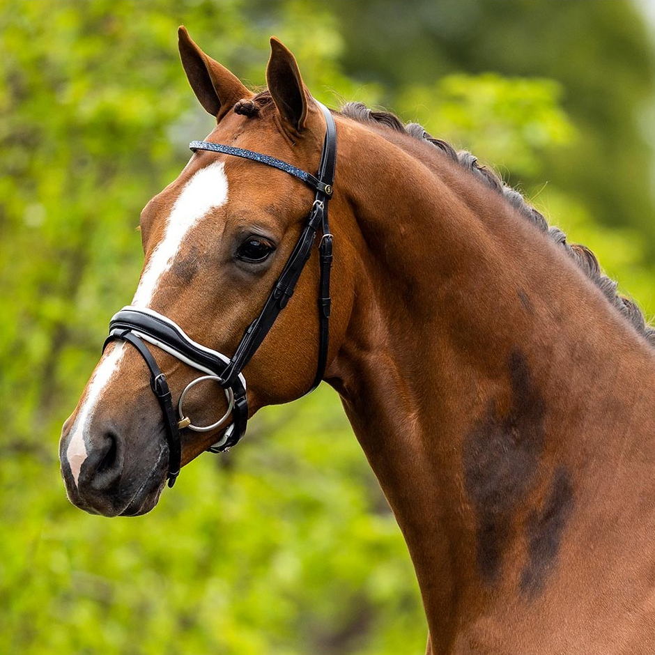 Уздечка BR "Newcastle" изготовлена из высококачественной европейской кожи. Широкий, анатомически изогнутый, самозатягивающийся капсуль (40 мм), мягкий затылочный ремень анатомической формы с дополнительным пространством вокруг ушей и изогнутый налобный ремень с кристаллами SWAROVSKI. Стильная серебристая фурнитура из хромированной латуни. Повод в комплект не входит.Нет в наличии, ожидается поступление.