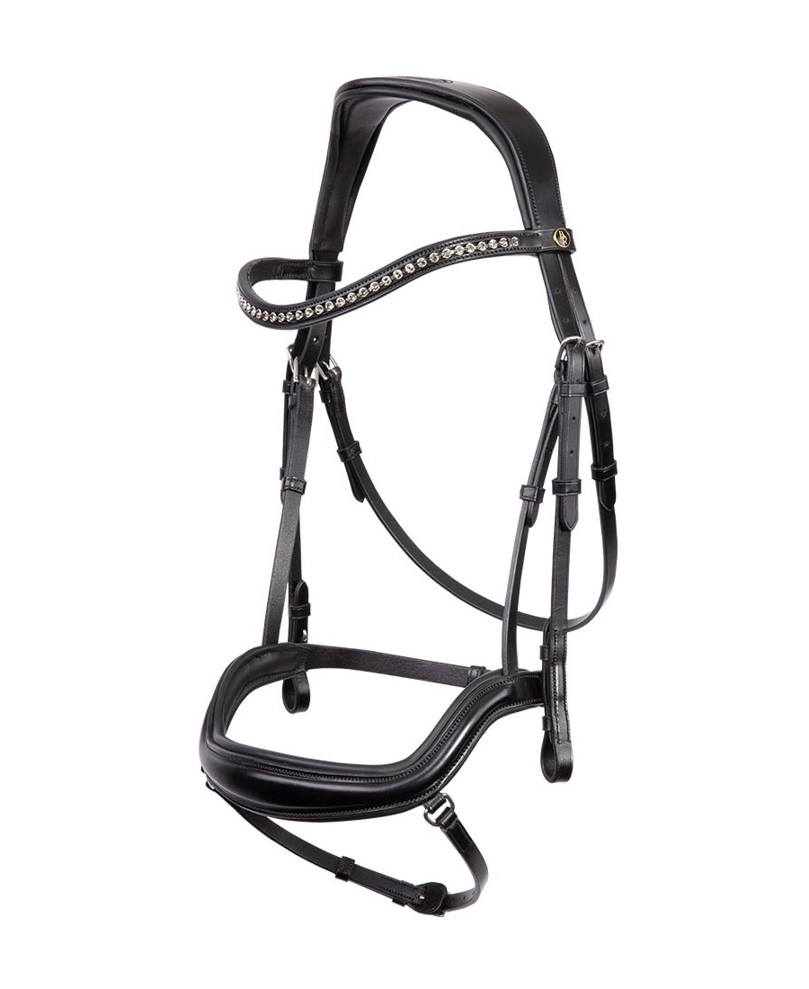 Уздечка BR "Stanley" изготовлена из высококачественной европейской кожи. Широкий затылочный ремень анатомической формы обеспечивает идеальную посадку, лучшее распределение давления на голову лошади и высокий комфорт. Анатомический капсуль обеспечивает больше свободного пространства вокруг челюсти и скул, снижает давление на чувствительные лицевые нервы лошади. Такой капсуль сочетает в себе эффект капсуля и распределение давления кавессона. Изогнутый налобный ремень украшен цепочкой из кристаллов Stellax™. Стильная серебристая фурнитура из хромированной латуни. Повод в комплект не входит.Нет в наличии, ожидается поступление.