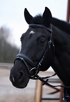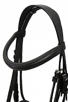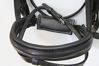 Кожаная уздечка с тесьмянными поводьями, самозатягивающимся капсулем и мягкой подкладкой на носовом и налобном ремнях.Нет в наличии, ожидается поступление.