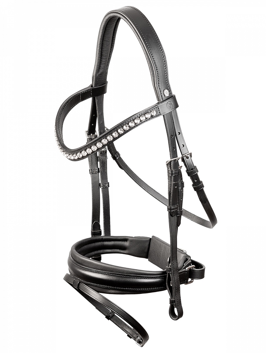 Премиум уздечка "Malmo" от Otto Schumacher. Анатомическая форма затылочного ремня с вырезом под уши, широкий капсуль 5 см с мягкой подложкой. Плотная кожа высочайшего качества, широкие нащечные ремни 16 мм для повышенной прочности. Изогнутый налобник с кристаллами Swarovski®. Кожаный повод с ограничителями в комплекте.Нет в наличии, ожидается поступление.