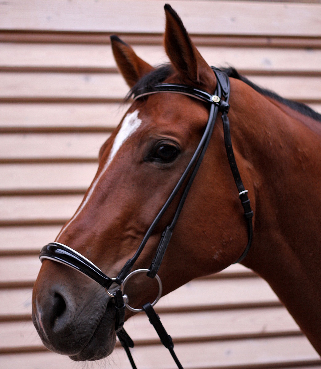 Уздечка из высококачественной дутой кожи оснащена лаковым налобным ремнем и чешским капсулем (40мм) с белой подложкой. Дутая кожа придает элегантность и оригинальный внешний вид. Кожа глубоко пропитана горячим пчелиным воском, эластична и будет служить Вам долгое время.Нет в наличии, ожидается поступление.