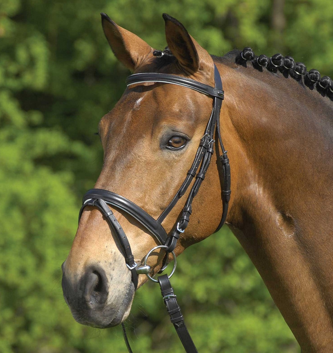 Уздечка из качественной кожи с прочной никелированной фурнитурой и удобным тесьмяным поводом шириной19мм. Капсуль и налобный ремень оснащены мягкими подложками и имеют классическую рельефную форму. Строгая и элегантная уздечка для ежедневной работы и турниров.Нет в наличии, ожидается поступление.