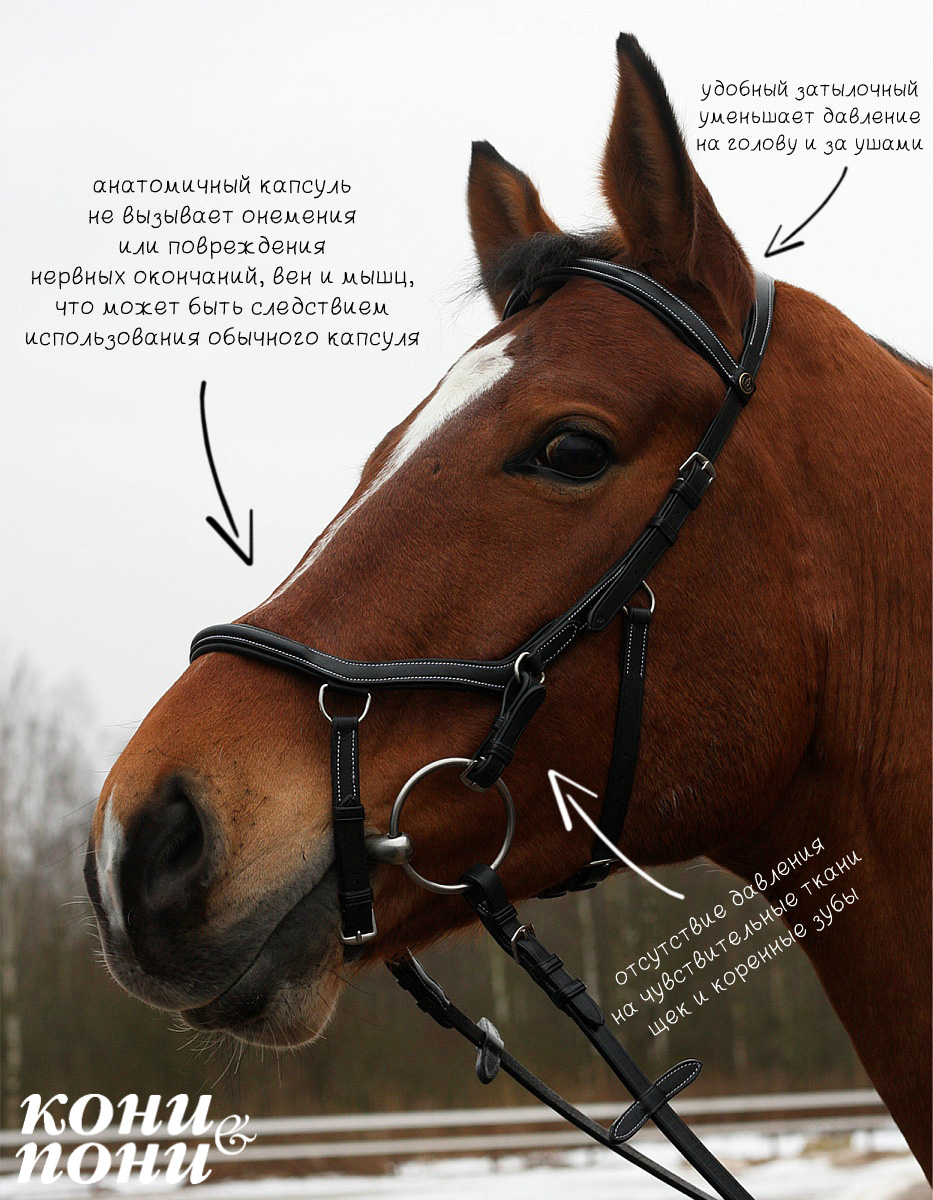 Мягкая и комфортная анатомическая уздечка, учитывающая строение черепа лошади. Снимает давление на затылок, на сдавливает лицевые кости и нервы, не нарушает кровообращение. Изогнутый анатомический капсуль улучшает управляемость не затрудняя дыхание. Фирменная маркировка с короной, фурнитура хром. Повод в комплекте.Перед посещением, уточняйте наличие товара в магазине
