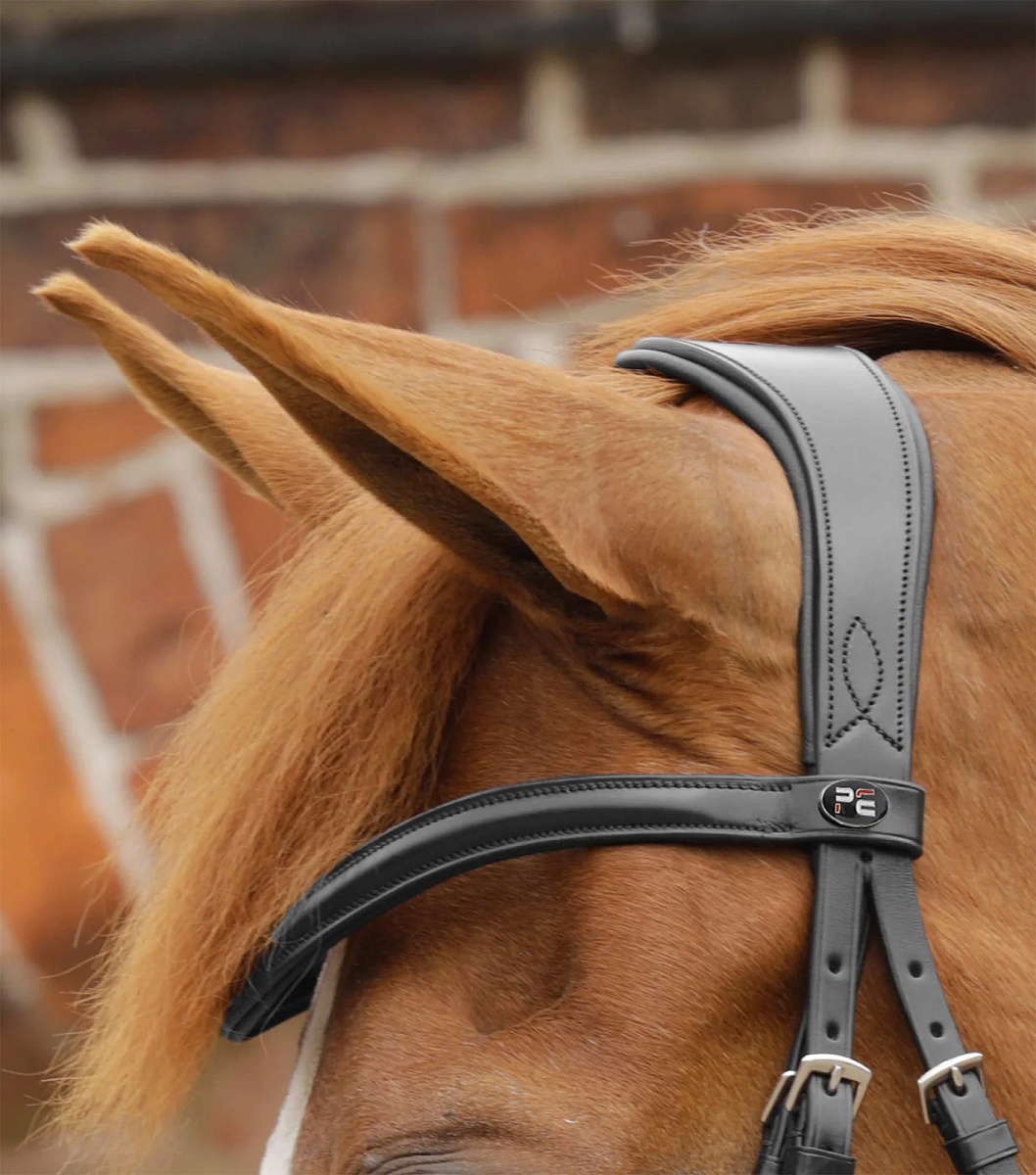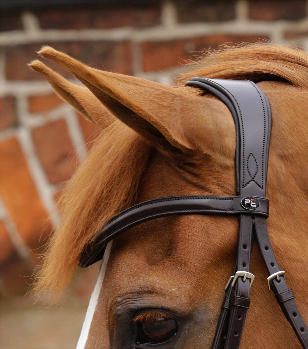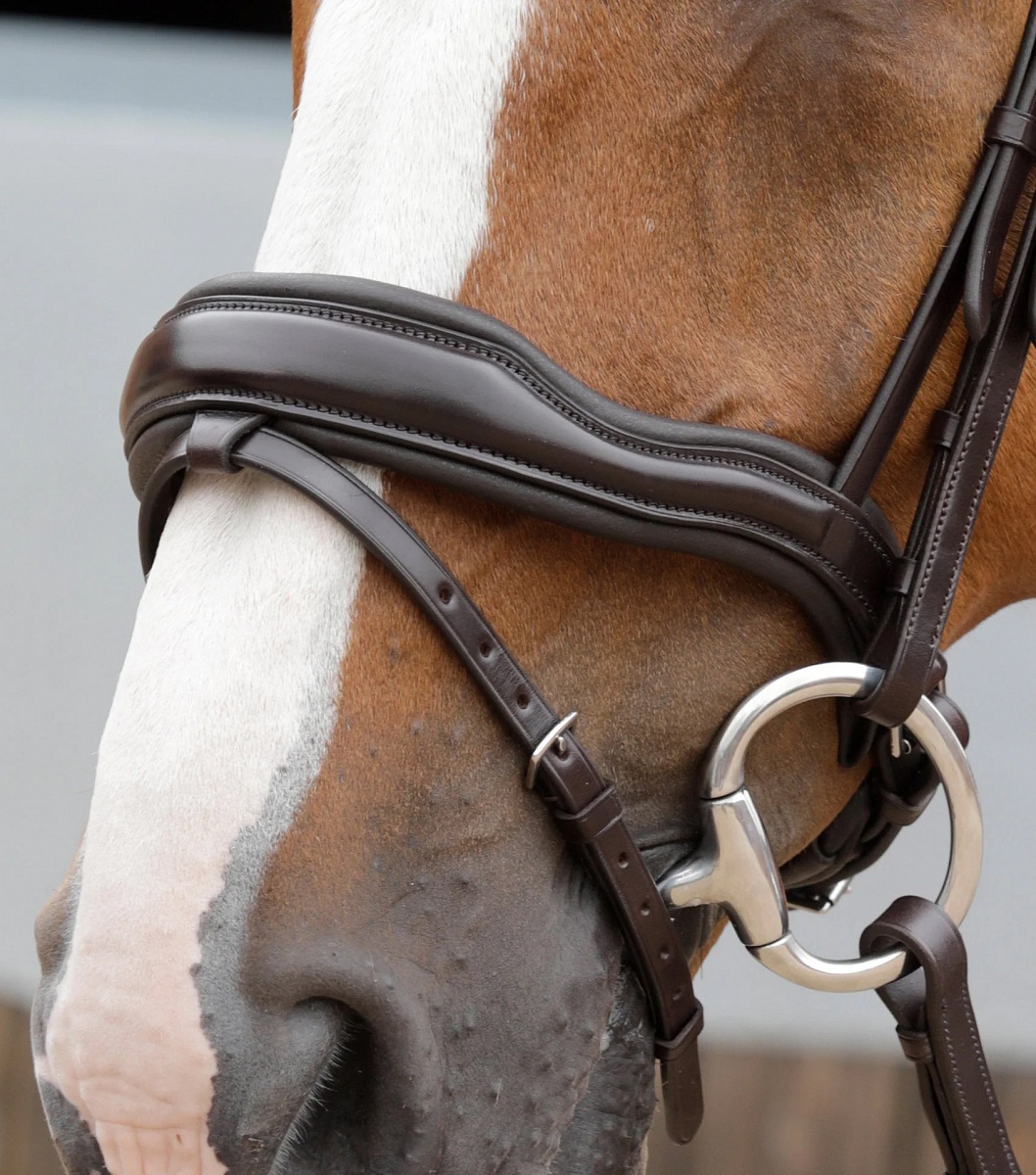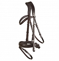 Классическая уздечка из мягкой итальянской кожи. Анатомический крой, мягкая подложка для равномерного распределения давления. Изогнутая форма огибает все чувствительные зоны вокруг ушей, носа и скуловых костей лошади. Фурнитура хром. Повод в комплект не входит.Нет в наличии, ожидается поступление.