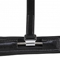 Уздечка "FILOSOFIA" от Acavallo. Нежная итальянская кожа с мягкой латексной подложкой. Анатомический затылочный ремень, капсуль с вырезом под трензельные кольца. Фирменная саморегулирующаяся система крепления нащечных ремней освобождает от давления лицевые кости и нервы, не нарушает кровообращение. Саморегулирующийся капсуль, съемный ремешок-восьмерка. Хромированная серебристая фурнитура и фирменная маркировка на затылочном ремне. Повод в комплект не входит.Перед посещением, уточняйте наличие товара в магазине
