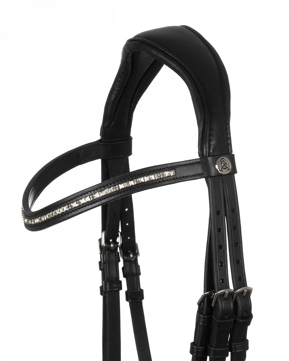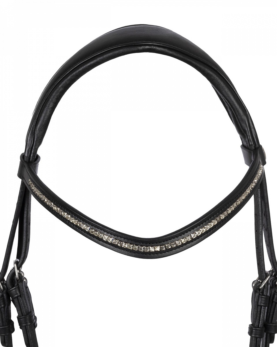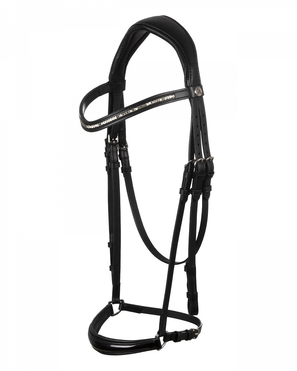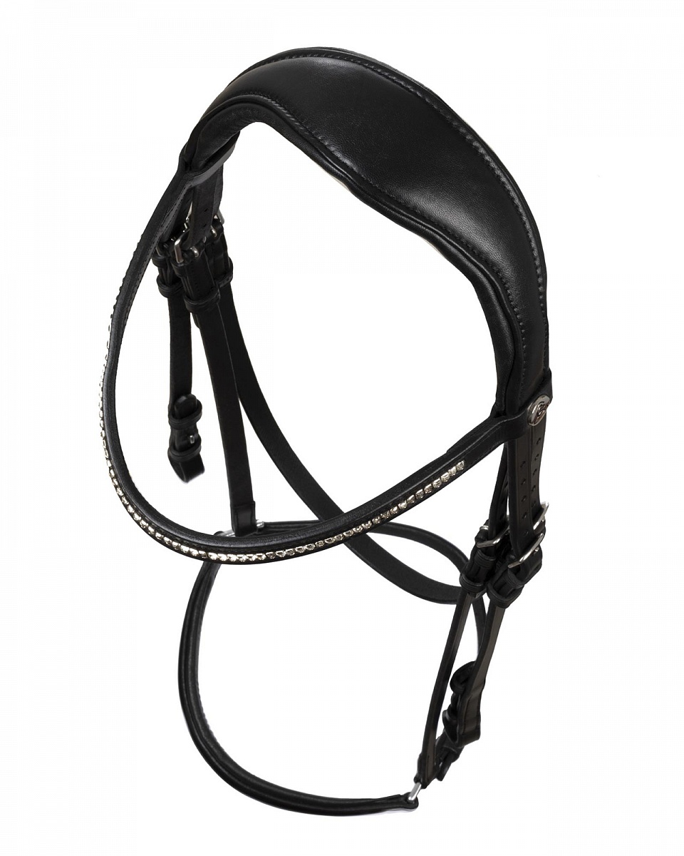 Уздечка "DAMA" с чешким капсулем. Подхождит для лошадей, которые сильно открывают рот, не терпят давления в области переносья или "выставляют" челюсть. Нежная телячья кожа с мягкой латексной подложкой, широкий затылочный, прямой налобный ремень с рядом кристаллов, хромированная серебристая фурнитура. Повод в комплект не входит.Нет в наличии, ожидается поступление.