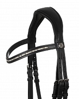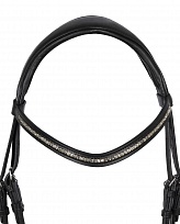 Уздечка "DAMA" с чешким капсулем. Подхождит для лошадей, которые сильно открывают рот, не терпят давления в области переносья или "выставляют" челюсть. Нежная телячья кожа с мягкой латексной подложкой, широкий затылочный, прямой налобный ремень с рядом кристаллов, хромированная серебристая фурнитура. Повод в комплект не входит.Перед посещением, уточняйте наличие товара в магазине