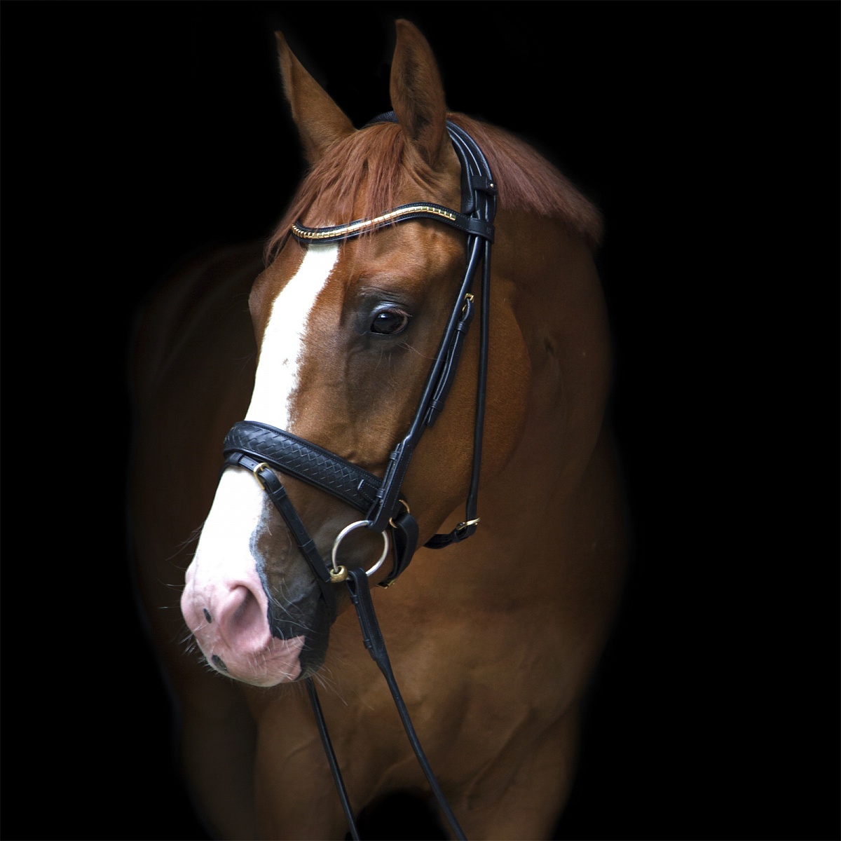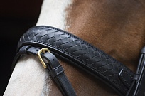 Дутая уздечка с анатомическим капсулем и широким затылочным ремнем. Удобная форма для оптимального распределения давления. Эксклюзивная уздечка сделана вручную опытными мастерами из лучшей итальянской кожи. Повод в комплект не входит.Нет в наличии, ожидается поступление.