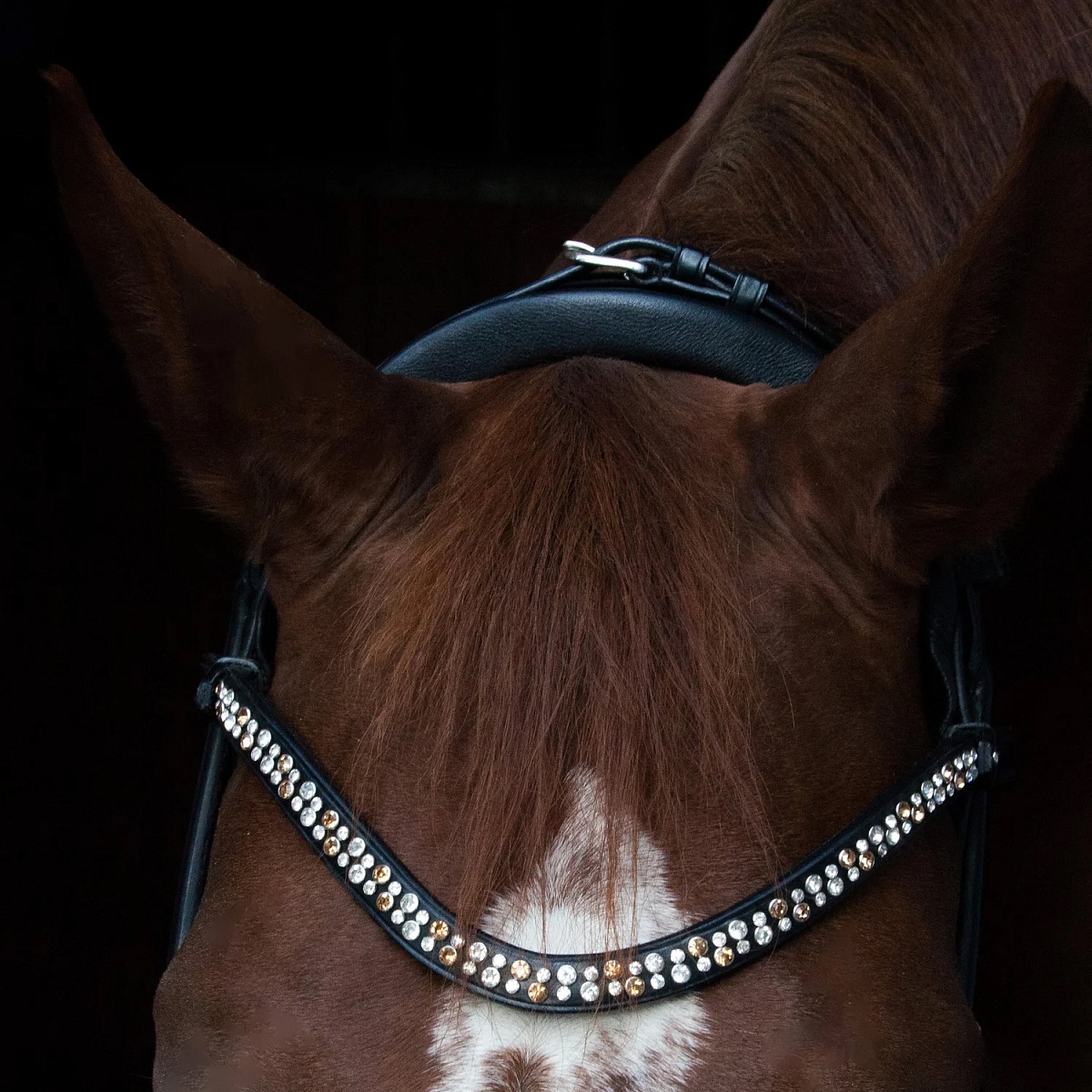 Дутая уздечка Miami с незабываемым сияющим капсулем. Стильные дутые нащечные ремни, анатомический затылочный, удобная регулировка подбородного. Стильный налобный ремень изогнутой формы с роскошным рядом кристаллов. Широкий самозатягивающийся капсуль с двойным сверкающимя рядом страз. Сделано вручную опытными мастерами из лучшей итальянской кожи. Поводья в комплект не входят. Для тех, кто не боится сиять!Перед посещением, уточняйте наличие товара в магазине