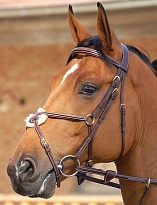 Уздечка c мексиканским капсулем. Улучшает управляемость, не давит на чувствительные точки на морде лошади и не препятствует дыханию. Изогнутый анатомический затылочный ремень дает больше пространства для основания ушей и снимает давление с затылка лошади. Матовая фурнитура из высококачественной нержавеющей стали, прочные английские крючки на нащечных ремнях. Повод в комплект не входит.Нет в наличии, ожидается поступление.