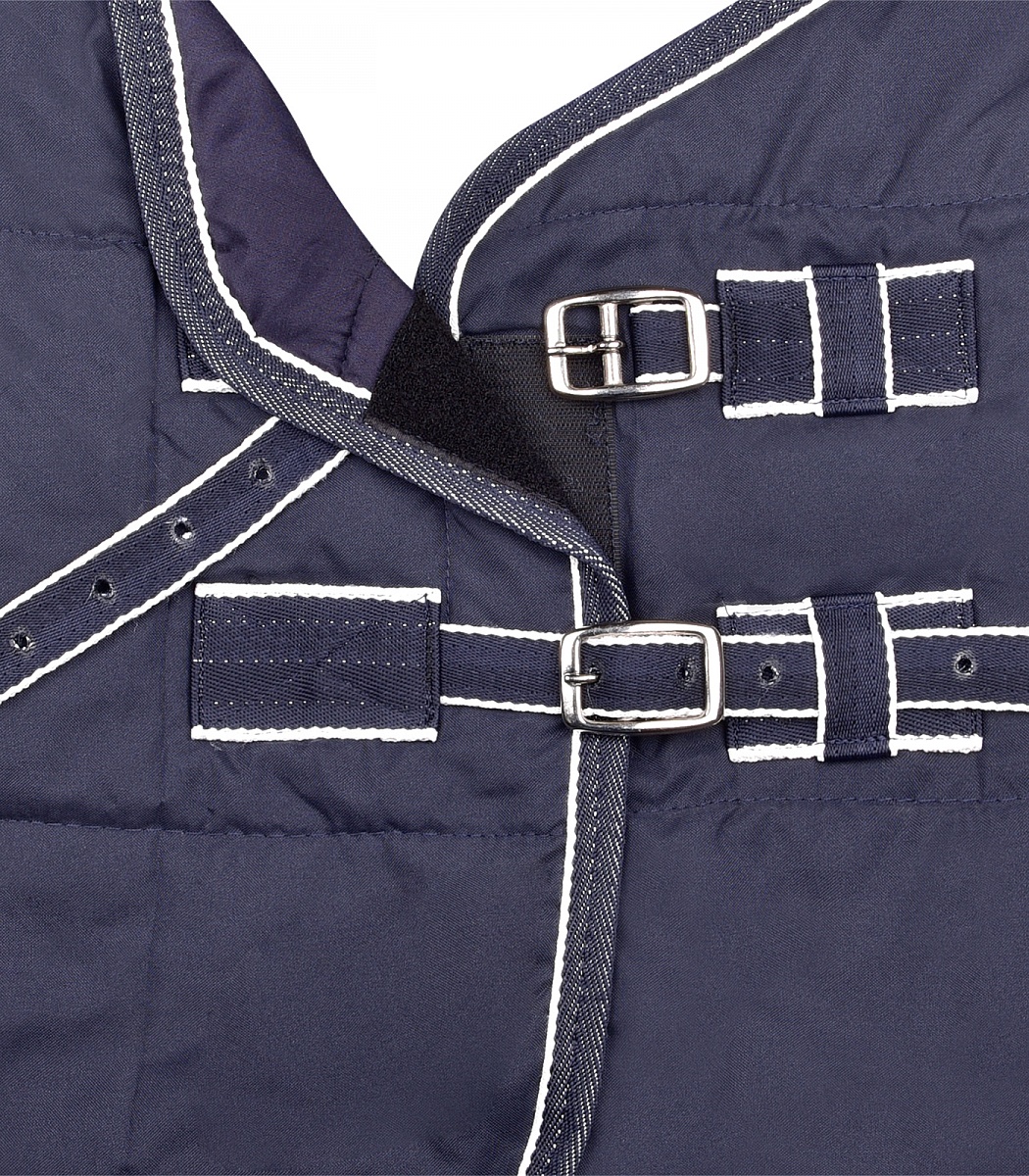 Базовая денниковая попона с утеплителем. Идеальный вариант для межсезонья! Эффектная горизонтальная стежка, идеальная посадка благодаря анатомическому крою по центральному шву спинки. Дышащий материал верха плотностью 300D, двойная передняя застежка, два перекрестных трока, клиновидные вставки в области плеч для комфортного передвижения. Мягкая оторочка на холке. Нарядный контрастный кант на всех деталях попоны. Утеплитель 100 г/м.Нет в наличии, ожидается поступление.