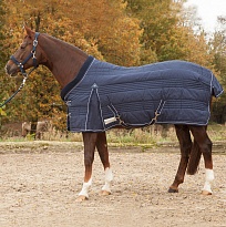 Денниковая попона с утеплителем. Идеальный вариант для межсезонья! Стильная горизонтальная стежка, идеальная посадка благодаря анатомическому крою по центральному шву спинки. Дышащий материал верха плотностью 840D, двойная передняя застежка, два перекрестных трока. Клиновидные вставки в области плеч для комфортного передвижения. Мягкая оторочка на холке и завышенный воротник для максимального комфорта и защиты от потертостей. Нарядный контрастный кант на всех деталях попоны. Утеплитель 100 г/м.Перед посещением, уточняйте наличие товара в магазине