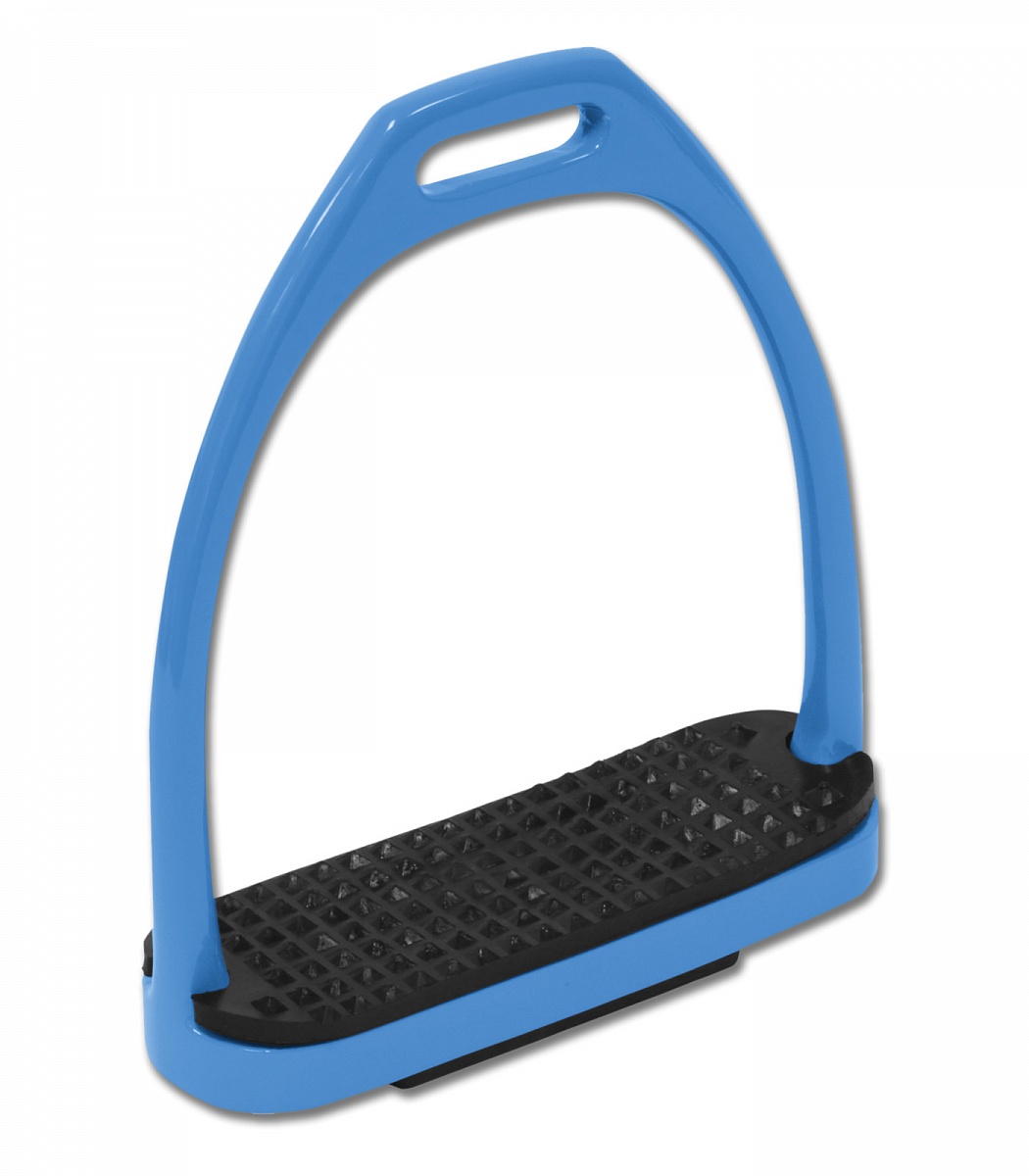 Классические стремена из нержавеющей стали с цветным покрытием и чёрной резинкой на подошве, которая предотвращает скольжение сапог.Нет в наличии, ожидается поступление.