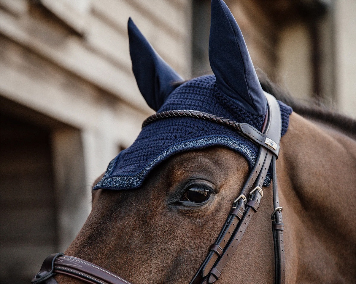 Плотные шумопоглощающие ушки Kentucky для чувствительных и пугливых лошадей. Слегка удлиненный крой, ручная вязка, стильная окантовка из мелких блестящих камней.Перед посещением, уточняйте наличие товара в магазине