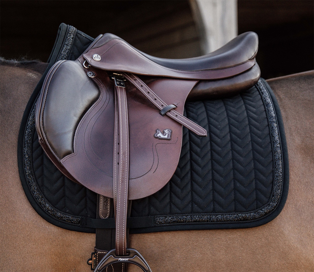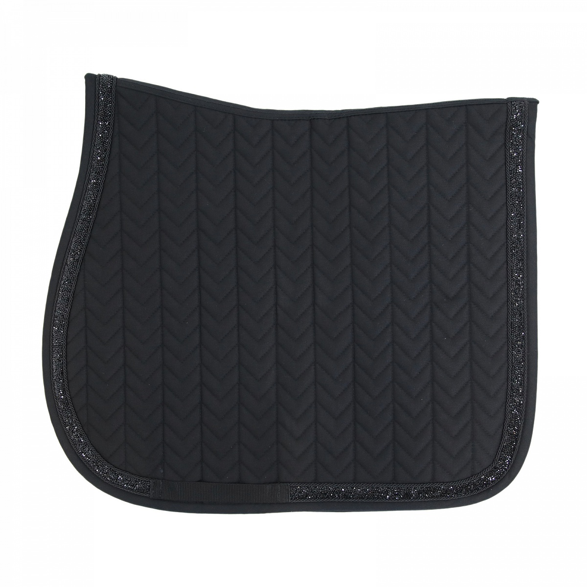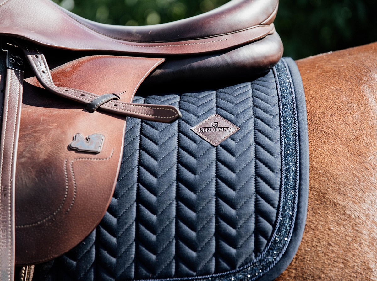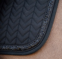 Стильный вальтрап от Kentucky с фирменной строчкой и яркими кристаллами. Анатомическая форма освобождает холку от давления и трения. Вафельная подкладка из смеси полиэстера с хлопком отлично впитывает пот. Стильный тройной кант, фирменный кожаный логотип. Для блестящих образов дома и на боевом поле!Перед посещением, уточняйте наличие товара в магазине