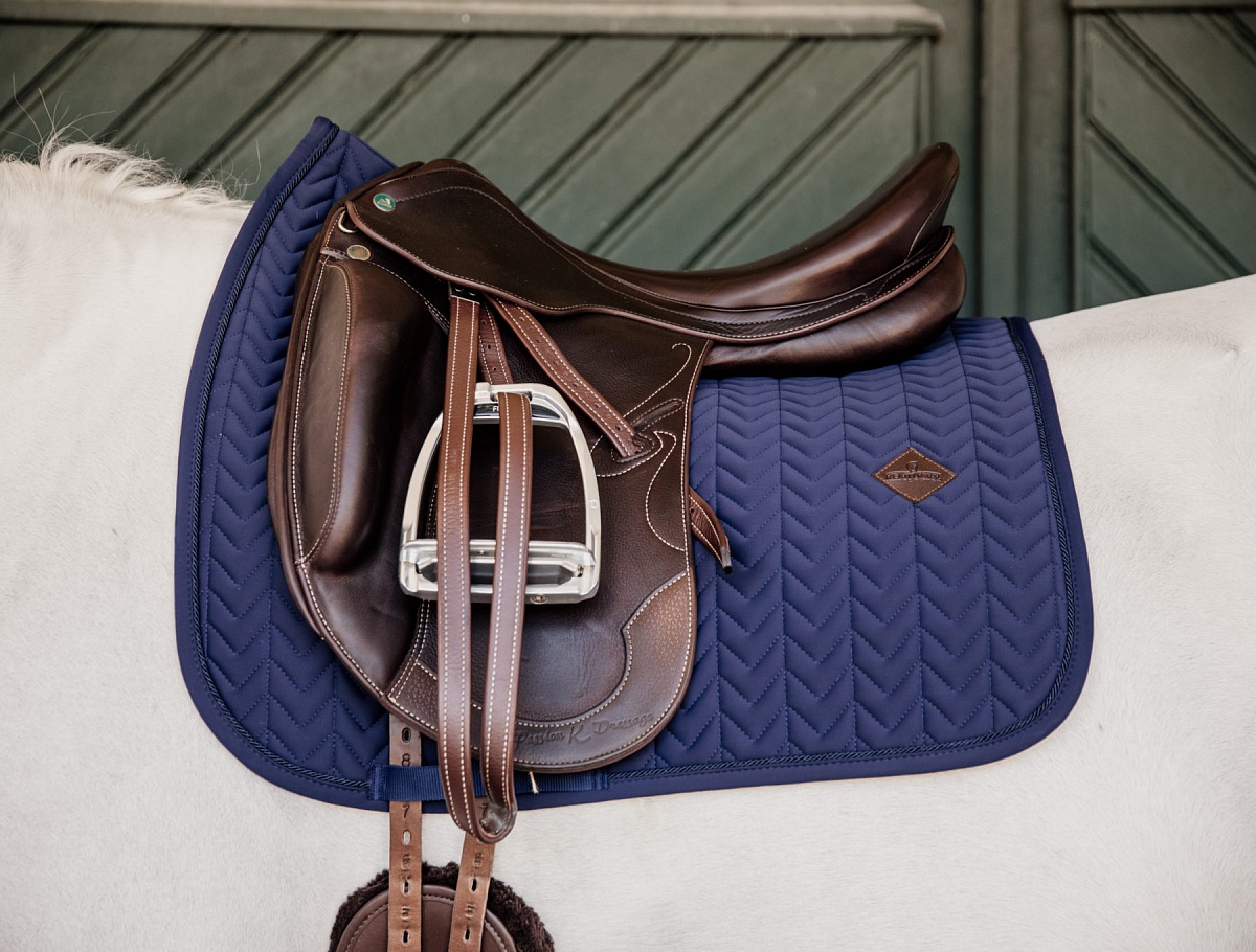 Стильный вальтрап от Kentucky в оригинальную строчку "рыбий хвост". Анатомическая форма освобождает холку от давления и трения. Вафельная подкладка из хлопка отлично впитывает пот. Кант в цвет вальтрапа и фирменный кожаный логотип.Перед посещением, уточняйте наличие товара в магазине
