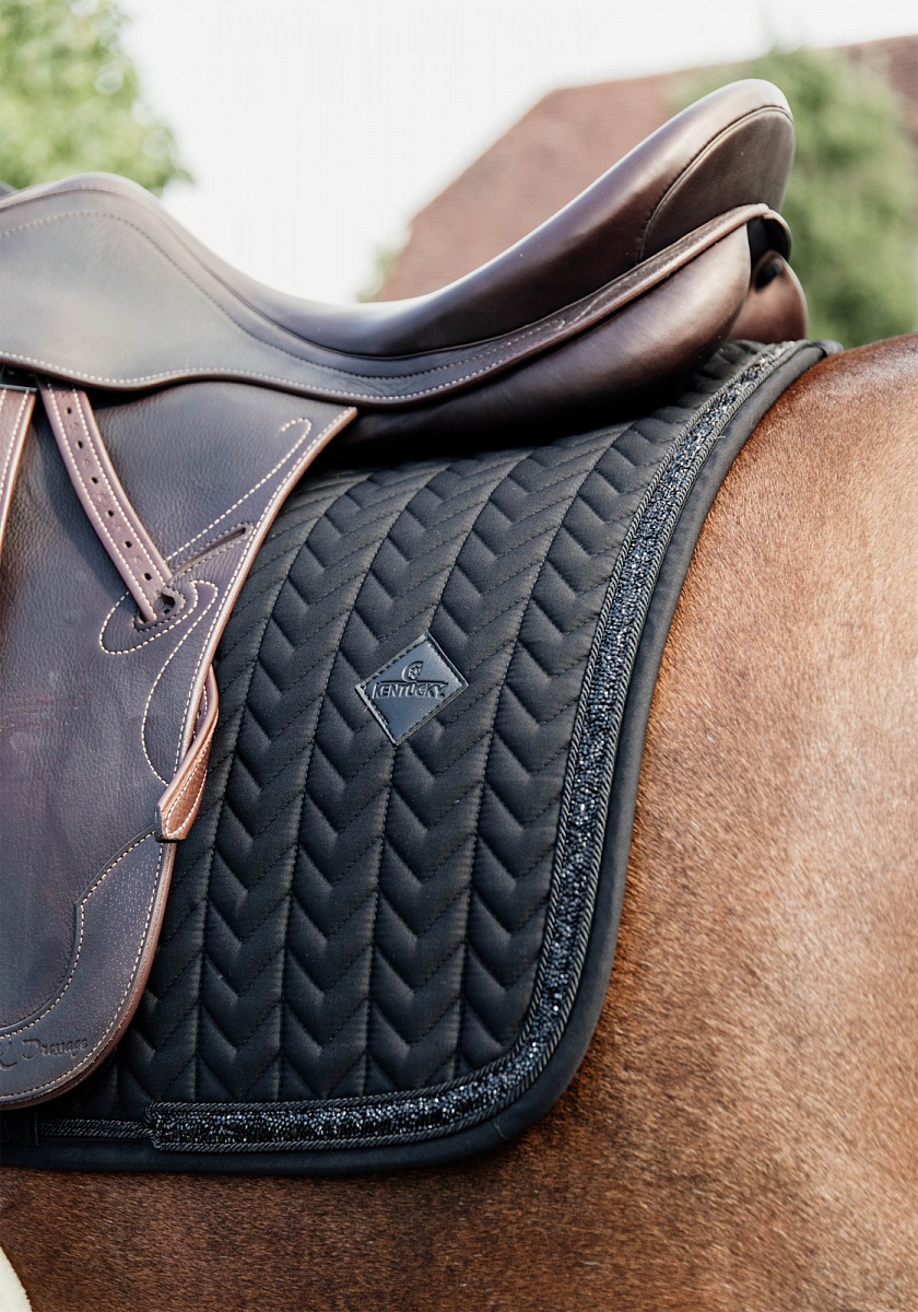 Стильный вальтрап от Kentucky с фирменной строчкой и яркими кристаллами. Анатомическая форма освобождает холку от давления и трения. Вафельная подкладка из хлопка отлично впитывает пот. Стильный тройной кант, фирменный кожаный логотип. Для блестящих образов дома и на боевом поле!| Наименование | Розничный магазин | Интернет-магазин | Кол-во | |