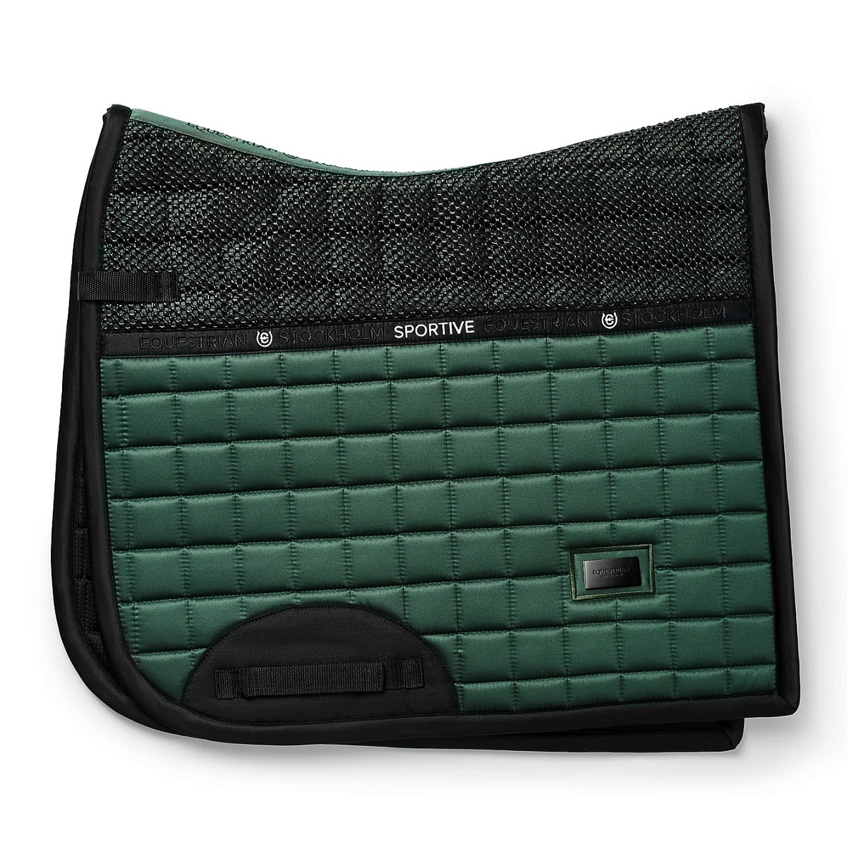 Выездковый вальтрап Equestrian Stockholm. Противоскользящая сетка позволяет коже дышать и надежно удерживает седло от сползания. Крупная квадратная строчка, мягкая подкладка из бамбуковой ткани с антибактериальным эффектом. Уплотненная вставка в области подпруги предохраняет от трения и увеличивает срок службы вальтрапа. Спортивный дизайн и стильный металлический значок с фирменным лого. Оптимальный выбор для интенсивных тренировок!Перед посещением, уточняйте наличие товара в магазине