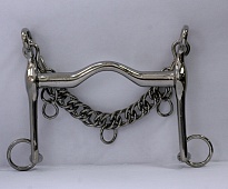 Мундштук из высококачественной нержавеющей стали с пологим грызлом, предназначенный для лошадей с низким нёбом. Особенностью мундштука является его наклонная на 30 градусов вперед форма. Тем самым, при воздействии повода, грызло плотнее прилегает к языку, а значит, команды всадника воспринимаются чётче. Длина щеки 13см.Нет в наличии, ожидается поступление.