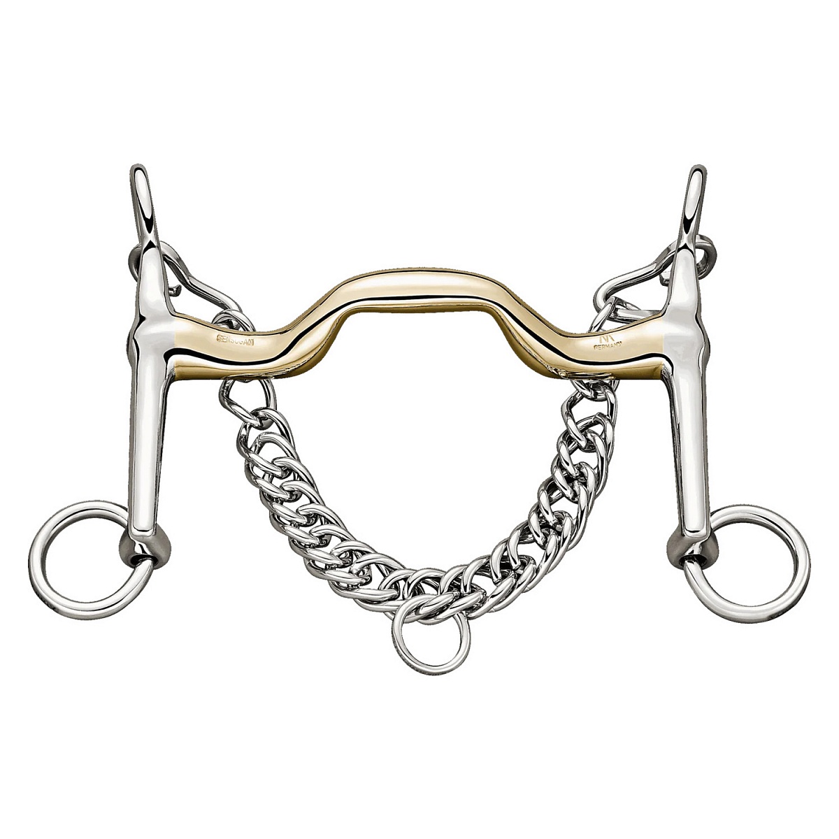Мундштук «KK» с грызлом анатомической формы, которое повторяет форму рта лошади. Его действие полностью отличается от действия других мундштуков, благодаря углу наклона языкового элемента. При натяжении поводьев дуга на грызле не движется в направлении нёба, а поворачивается на язык, равномерно распределяя давление. Короткие рычаги действуют мягко, но передают малейшее движение рук всадника.Перед посещением, уточняйте наличие товара в магазине